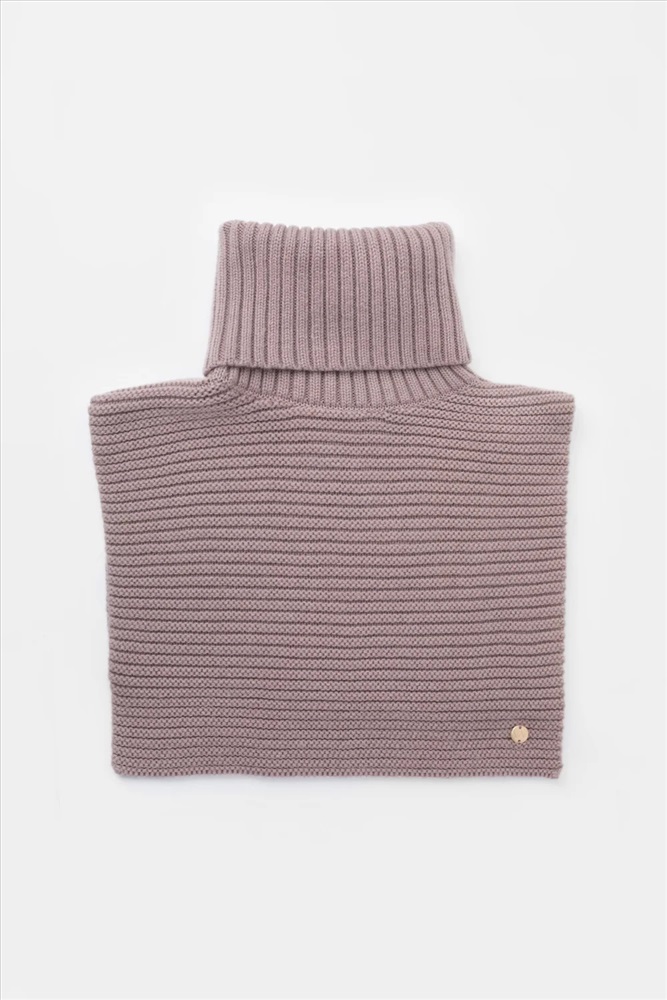 Уютная вязаная манишка с высоким воротником из шерсти и акрила. Шерсть в составе хорошо удерживает тепло, а волокна акрила делают изделие мягким и предотвращают деформацию и появление катышек. Лаконичный крой хорошо сочетается с верхней одеждой.