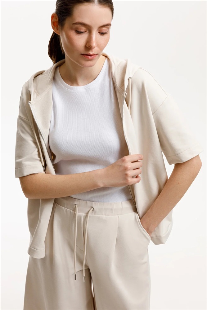 Производитель: VERY NEAT; Российский размер: 42; Обхват груди: 84; Обхват талии: 66; Обхват бедер: 90; Артикул поставщика: ЕВТ 3287; Ткань: Футер-петля; Состав: 95% хлопок, 5% спандекс; Сезон: Весна, Лето; Год: 2025; Страна: Россия; Рост: 164-170 Толстовка из мягкого эластичного футера с коротким рукавом сочетает в себе спортивный и базовый стиль. Изделие дополнено капюшоном и блеском металлической фурнитуры. В сочетании с брюками из этой коллекции вы создадите образ для приятных летних прогулок.