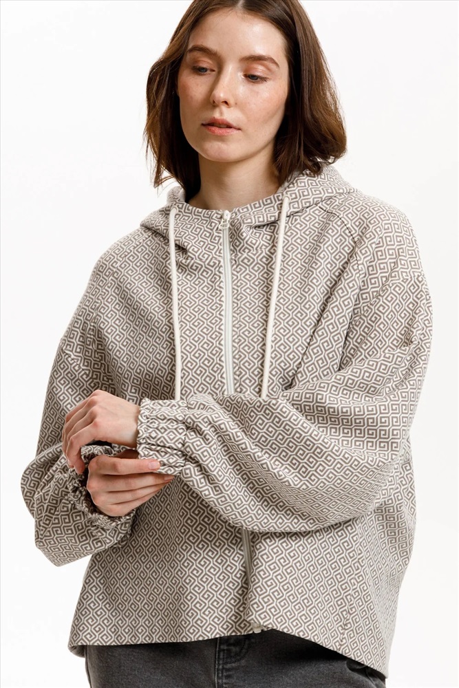Толстовка с капюшоном на молнии из премиального трикотажа. Объем изделию придают защиты на спине и свободный силуэт. Рукава в виде реглана завершены мягкими манжетами с эластичной резинкой внутри.