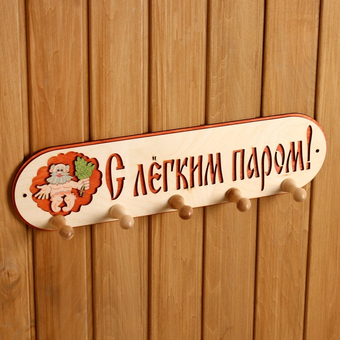 Баня, как и театр, начинается с вешалки. Повесьте изделие у входа полку, чтобы все было на своих местах. Прочные крючки могут выдержать большую нагрузку. Легко крепиться к стене гвоздями или саморезами.