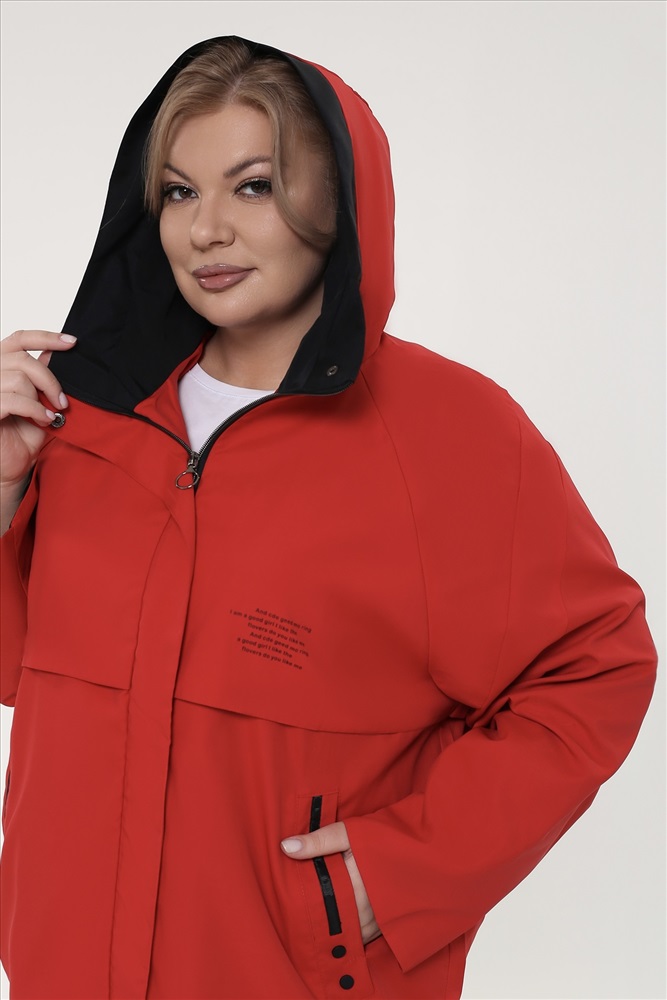 Оригинальная ветровка станет отличным выбором для прохладных весенних и осенних дней. Модель с прямым кроем оснащена скрытой молнией спереди. Удобный капюшон защищает шею от ветра. Длинные рукава-реглан по низу оформлены контрастным отворотом. По бокам расположены практичные прорезные карманы. Свободный крой обеспечивает свободу движений и скрывает недостатки фигуры. В прохладную погоду эта ветровка не только убережёт от холода и ветра, но и поможет сохранить стильный и женственный образ.