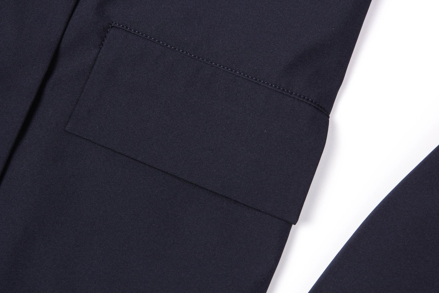Не так давно женские ветровки подразумевали только практичный спортивный фасон, сегодня модные ветровки стали более разноплановыми, поскольку выполнены они в различных стилях, в том числе и в элегантных моделях. Женская ветровка-жакет обладает свободным кроем, приспущенной линией плеч, а также имеет длину до середины бедра. Английский воротник, двубортная застежка на пришивные кнопки. На переде карманы с клапанами и декоративная нагрудная листочка с металлическим декором. Пояс в комплекте. Ткань бондинг состоит из двух слоев: верхний слой костюмная ткань, нижний слой-тонкое трикотажное полотно. Такое сочетание придает ему нужную плотность, хорошо пропускает воздух.