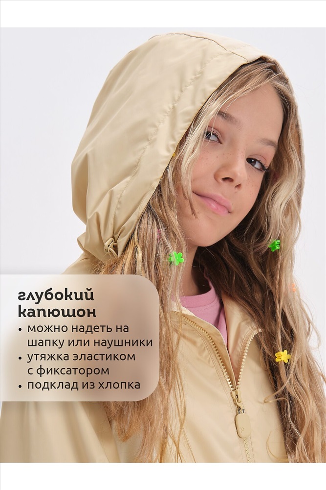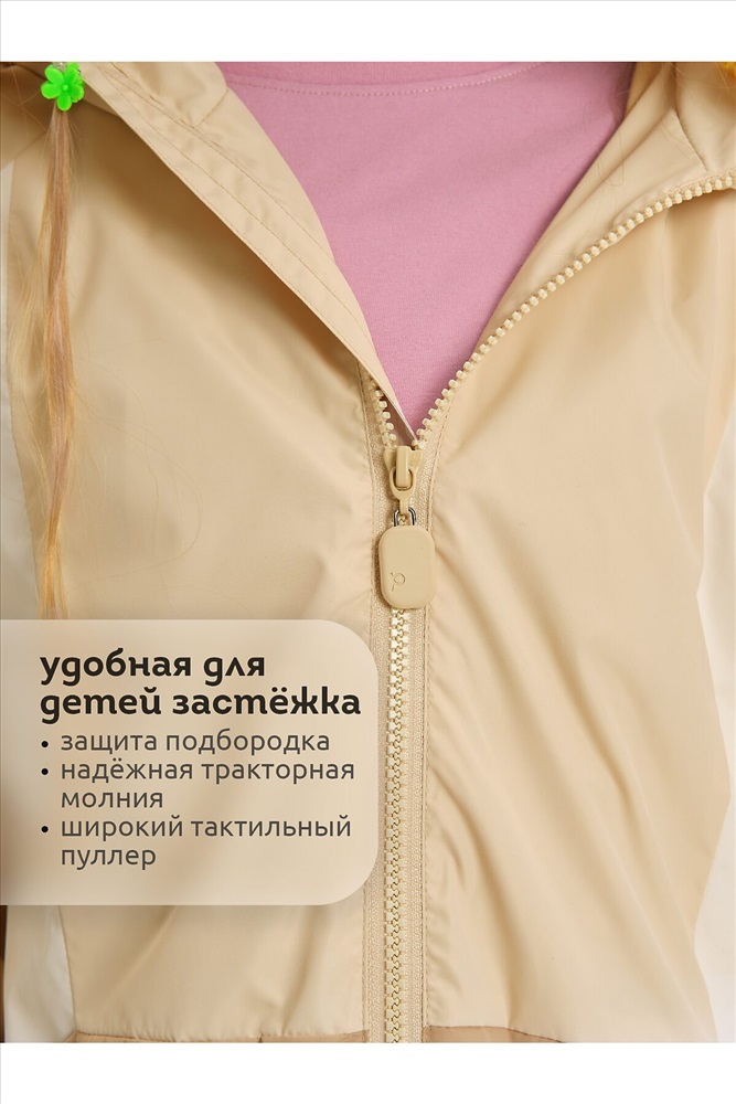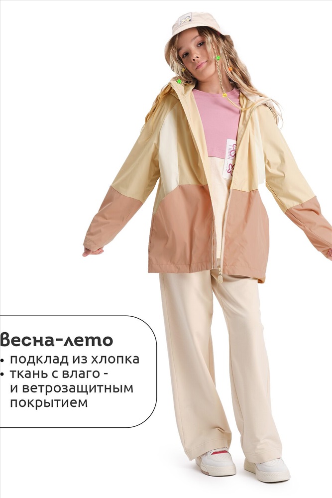 ID товара: 1104319 Состав: 100% Полиэстер, подклад- 60% Хлопок, 40% Полиэстер, подклад рукавов- 100% Полиэстер Сезон: Весна/Лето Длина: Средняя Фасон: Свободный Рукав: длинные Вид застежки: Молния Тип карманов: В шве Декоративные элементы: С капюшоном Стиль: повседневный Реком. темп. режим: до +10ºС Страна бренда: Россия Страна производства: Китай Ветровка для девочки — идеальный выбор для весны и ранней осени! Изделие с водоотталкивающей пропиткой защитит от дождя и ветра, обеспечивая комфорт в любую погоду. Ветровка оверсайз для девочки. Свободный силуэт и рукав реглан создают мягкую форму, которая подчеркивает фигуру и подходит для любого типа телосложения. Длинные рукава с манжетами на резинке и регулировкой шнуром гарантируют удобную посадку и защиту от холода. Ветровка с капюшоном для девочки. Капюшон с регулировкой объёма внутренним эластичным шнуром со стопперами обеспечивает дополнительную защиту от ветра и дождя Геометричные членения и стильный колор-блок делают ветровку модной и современной. Карманы на передней части добавят практичности, а регулируемый низ и капюшон обеспечат комфорт в любых условиях. Светоотражающие элементы на рукавах и спинке повышают безопасность в темное время суток. Хлопковый подклад мягко прилегает к коже, обеспечивая комфорт и тепло. В рукавах подклад из полиэстера облегчает надевание. Эта ветровка на весну для девочки— идеальный спутник для прогулок, игр и приключений, сочетает стиль и удобство. Идеально подойдёт как ветровка для девочки подростка, так и для самых маленьких модниц! Рекомендуемый температурный режим не ниже +10°C. Не забывайте о выборе правильного размера. Используйте таблицу размеров на фотографии, чтобы выбрать подходящий размер. Обратите внимание, что цвет товара на экране вашего устройства может отличаться от реального. Комментарии к товару