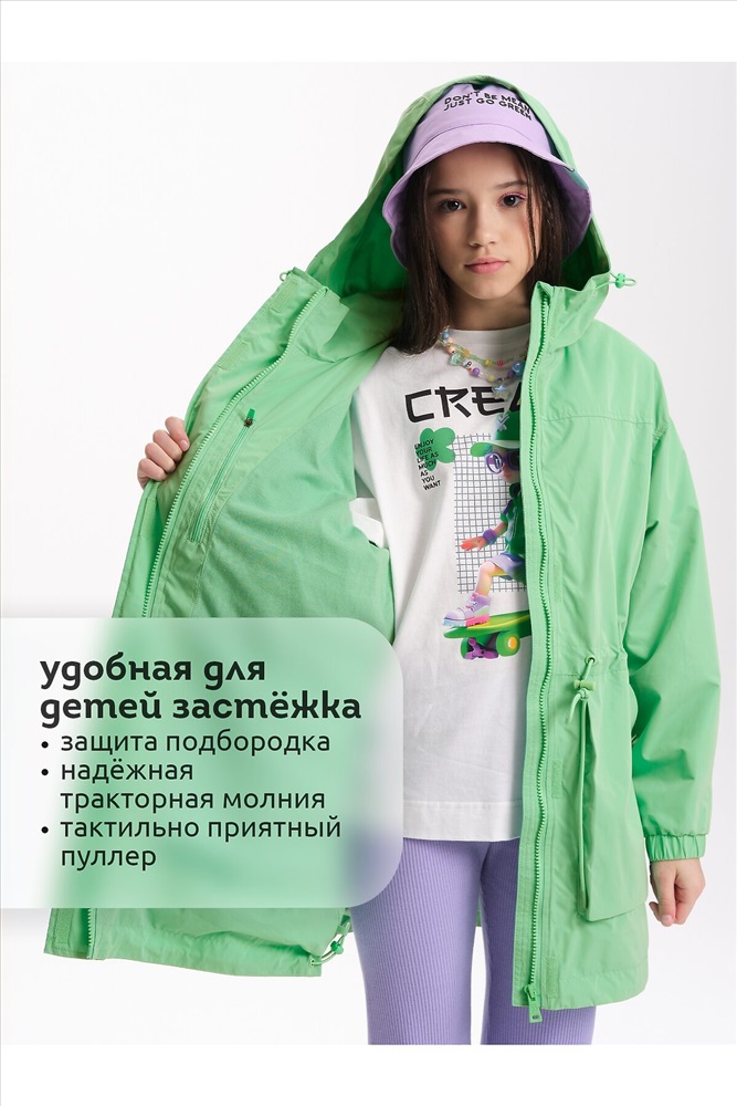 ID товара: 1104323 Состав: 100% Полиэстер+мембрана, подклад- 60% Хлопок, 40% Полиэстер, подклад рукавов- 100% Полиэстер Сезон: Весна/Лето Длина: Средняя Фасон: Свободный Рукав: длинные Вид застежки: Молния Тип карманов: Накладные Декоративные элементы: С капюшоном Стиль: повседневный Реком. темп. режим: до +10ºС Страна бренда: Россия Страна производства: Китай Ветровка для девочки: стиль, комфорт и забота в каждой детали! Ветровка на весну для девочки легкая, с мягким хлопковым подкладом - она обеспечит комфорт в любую погоду. Декоративные подрезы по переду и спинке добавляют изысканности, а утяжка на талии подчеркивает силуэт, делая образ аккуратным. Центральная застежка-молния. Сверху концы замка закрываются основной тканью, чтобы молния не царапала кожу ребенка. Ветрозащитная планка с липучками защитит от ветра. Ветровка с капюшоном. Капюшон с утяжкой и стоппером надежно защитит от ветра и дождя. Защипы на рукавах и резинка на манжетах добавляют удобства, а внутренняя утяжка по низу сохраняет тепло. Подклад из мягкого хлопкового трикотажа обеспечивает комфорт, в рукавах подклад из полиэстера облегчает надевание. Объемные накладные карманы и потайной карман — не только стильный акцент, но и удобство для хранения важных мелочей. Светоотражающие элементы на рукавах и спинке повышают безопасность в темное время суток. Куртка легкая для девочки — идеальный выбор для мам, ценящих комфорт, стиль и безопасность своих детей! Идеально подойдёт как ветровка для девочки подростка, так и для самых маленьких модниц! Рекомендуемый температурный режим не ниже +10°C. Не забывайте о выборе правильного размера. Используйте таблицу размеров на фотографии, чтобы выбрать подходящий размер. Обратите внимание, что цвет товара на экране вашего устройства может отличаться от реального. Комментарии к товару