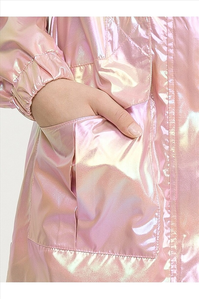 Удлиненная ветровка на тонком подкладе. Рекомендуемый температурный режим не ниже плюс 10 градусов. Ткань с жемчужно перламутровым водоотталкивающим покрытием! Регулировка объема понизу эластиком со стоппером, по спинке внешней кулиской с декоративным шнуром. Двухшовный неотстегивающийся капюшон, переходящий в стойку воротника. Застежка тракторная молния, разъёмная сверху и снизу. Ветрозащитная планка на липучке. Изюминка оригинальные накладные карманы со складкой и клапаном геометричной формы. Оригинальная резиновая фурнитура. Световозвращающая тесьма в боковых карманах и кокетке на спинке.