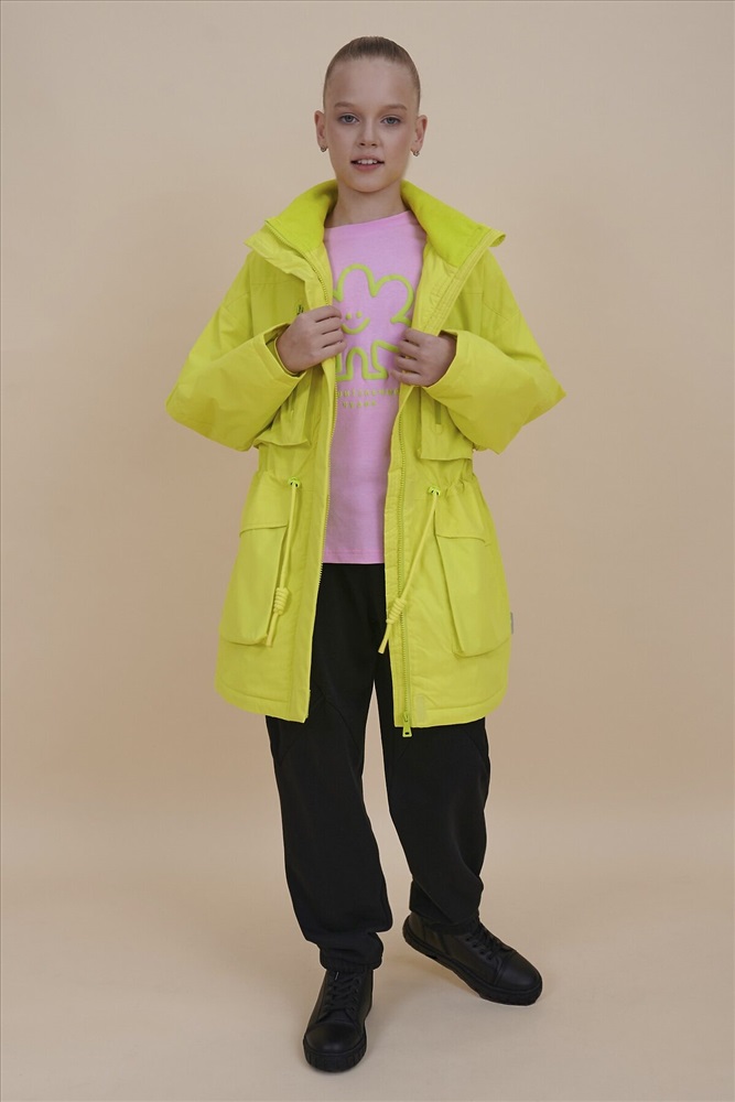 ID товара: 970741 Состав: 100% Полиэстер+мембрана, подклад- 100% Полиэстер, утеплитель- 100% Полиэстер Сезон: Демисезон Длина: Удлиненная Фасон: Полуприлегающий Рукав: длинные Вид застежки: Молния Тип карманов: Накладные Декоративные элементы: С капюшоном Стиль: повседневный Реком. темп. режим: до +5ºС Страна бренда: Россия Страна производства: Россия Парка для девочки с температурным режимом не ниже +5°С прямого свободного силуэта. Мягкий оверсайз. Ветровка на флисовом подкладе (верх переда и спинки, подклад капюшона из флиса, а нижняя часть переда и спинки и подкладка рукава из 100% POLY + синтепон 40г/м2 ). Мембранная ткань хорошо защищает нижние слои одежды от намокания. Структура мембранной ткани позволяет коже дышать - ребенок легко двигается и не переохлаждается. Изделие сохраняет первоначальный внешний вид даже при активной носке. Водоотталкивающая пропитка или DWR (Durable Water Repellent) – «устойчивое водоотталкивающее покрытие» - защищает от промокания под дождем: материал не утяжеляется под воздействием влаги, позволяя свободно пропускать воздух. Низ рукава прямой, внутри рукава расположена скрытая манжета из мягкой эластичной ткани. По центру переда застежка на молнию, молния закрыта планкой на застежке велькро (липы). По верху переда накладные карманы, имитирующие объемную кокетку переда. Карманы застегиваются на водонепроницаемые молнии со скрытыми звеньями. Содержимое карманов не пострадает от дождя. Накладные объемные карманы с декоративным фигурным клапаном, вход в карман с боковой стороны - удобно. Оригинальная форма капюшона с цельнокроеным козырьком и двумя видами утяжек: по ширине и высоте. Капюшон не отстегивается. Два вида утяжки: по талии утяжка на шнур со стопперами и по низу изделия на эластик со стопперами. Можно менять силуэт ветровки и сохранять тепло. На спинке и в боковых швах расположены светоотражающие элементы — безопасность в тёмное время суток. За изделием легко ухаживать. Изделие представлено в цвете на выбор: синий, желтый, розовый, бежевый, нежно зеленый и лайм. Единый дизайн name label’s - ребенок не потеряется и легко отыщет свою одежду. Размерная линейка: 3 (98): 4 (104): 5 (110): 6 (116): 7 (122): 8 (128): 9 (134): 10 (140): 11 (146). Предусмотрена стирка при температуре +30 градусов. Выбирайте нужный размер по таблице размеров на фото. Цвет товара на экране вашего устройства может отличаться от цвета изделия вживую. Комментарии к товару