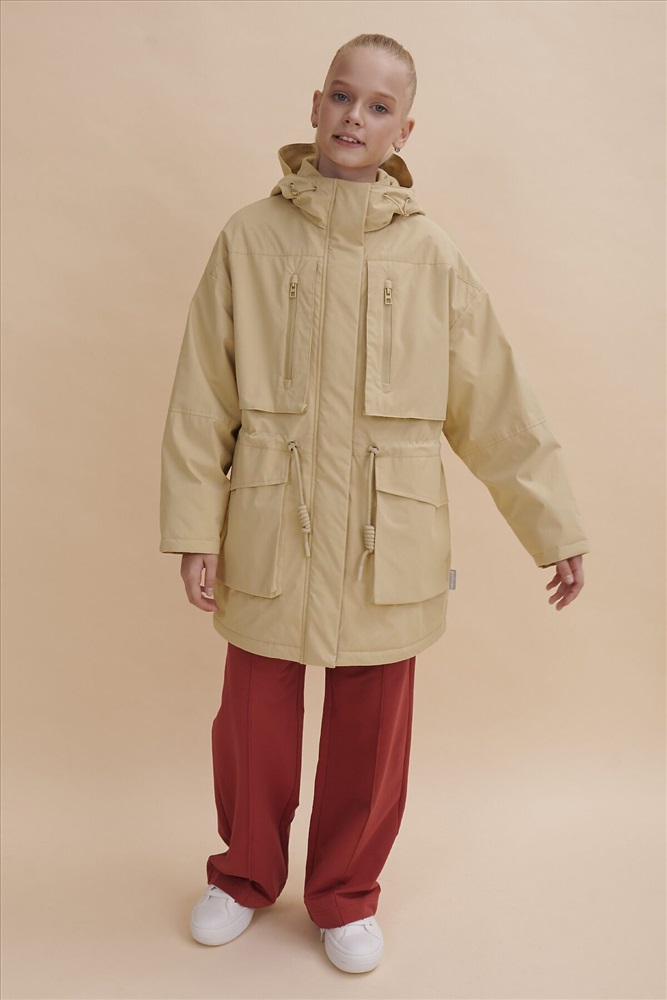 Парка для девочки с температурным режимом не ниже +5°С прямого свободного силуэта. Мягкий оверсайз. Ветровка на флисовом подкладе (верх переда и спинки, подклад капюшона из флиса, а нижняя часть переда и спинки и подкладка рукава из 100% POLY + синтепон 40г/м2 ). Мембранная ткань хорошо защищает нижние слои одежды от намокания. Структура мембранной ткани позволяет коже дышать - ребенок легко двигается и не переохлаждается. Изделие сохраняет первоначальный внешний вид даже при активной носке. Водоотталкивающая пропитка или DWR (Durable Water Repellent) – «устойчивое водоотталкивающее покрытие» - защищает от промокания под дождем: материал не утяжеляется под воздействием влаги, позволяя свободно пропускать воздух. Низ рукава прямой, внутри рукава расположена скрытая манжета из мягкой эластичной ткани. По центру переда застежка на молнию, молния закрыта планкой на застежке велькро (липы). По верху переда накладные карманы, имитирующие объемную кокетку переда. Карманы застегиваются на водонепроницаемые молнии со скрытыми звеньями. Содержимое карманов не пострадает от дождя. Накладные объемные карманы с декоративным фигурным клапаном, вход в карман с боковой стороны - удобно. Оригинальная форма капюшона с цельнокроеным козырьком и двумя видами утяжек: по ширине и высоте. Капюшон не отстегивается. Два вида утяжки: по талии утяжка на шнур со стопперами и по низу изделия на эластик со стопперами. Можно менять силуэт ветровки и сохранять тепло. На спинке и в боковых швах расположены светоотражающие элементы — безопасность в тёмное время суток. За изделием легко ухаживать. Изделие представлено в цвете на выбор: синий, желтый, розовый, бежевый, нежно зеленый и лайм. Единый дизайн name label’s - ребенок не потеряется и легко отыщет свою одежду. Размерная линейка: 3 (98): 4 (104): 5 (110): 6 (116): 7 (122): 8 (128): 9 (134): 10 (140): 11 (146). Предусмотрена стирка при температуре +30 градусов. Выбирайте нужный размер по таблице размеров на фото. Цвет товара на экране вашего устройства может отличаться от цвета изделия вживую.