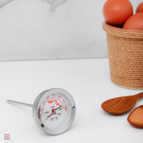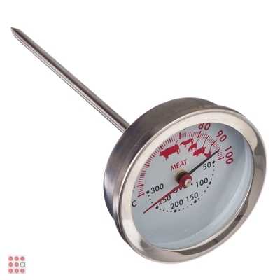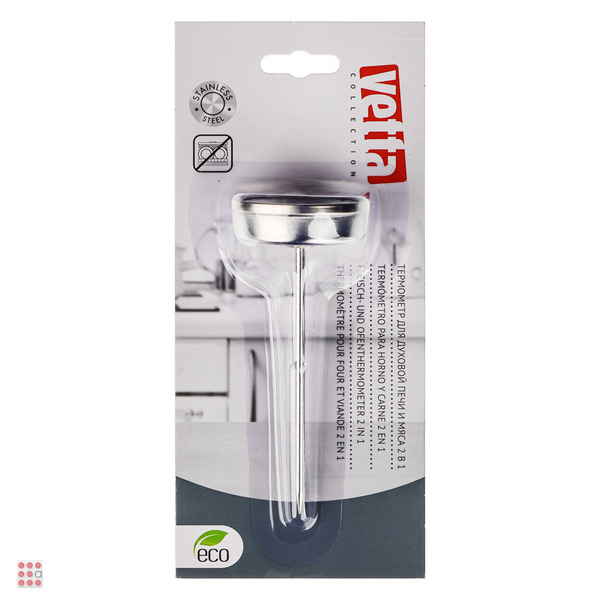 Кухонный термометр для мяса из нержавеющей стали. Диапазон рабочих температур от 0 до 100 C и от 0 до 300 С Для того чтобы правильно приготовить блюдо, нужно знать при какой температуре оно готовится. Решением станет термометр VETTA для духовой печи. Шкала показывает от 0 до 300 градусов Цельсия. Выполнен термометр из нержавеющей стали. Для удобного расположения в духовке есть специальное приспособление. Прибор имеет 2 шкалы: для измерения температуры мяса и в духовой печи. Данный термометр применяется для моментального отображения и контроля температуры пищи при выпекании Основные особенности устройства: моментальное считывание, чувствительный и точный зонд Комментарии к товару