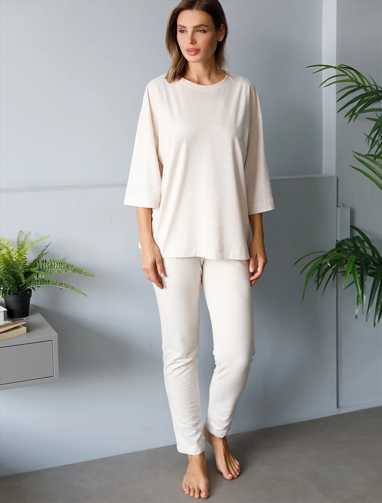 Брюки выполнены из тонкого хлопкового футера. Эластичный материал хорошо пропускает воздух, позволяя телу дышать, и легко тянется, не ограничивая движения. Пояс на резинке дополнен внутренним шнуром, для комфортной регулировки изделия. Брюки сочетаются в костюме с джемпером D49.054 и D49.055