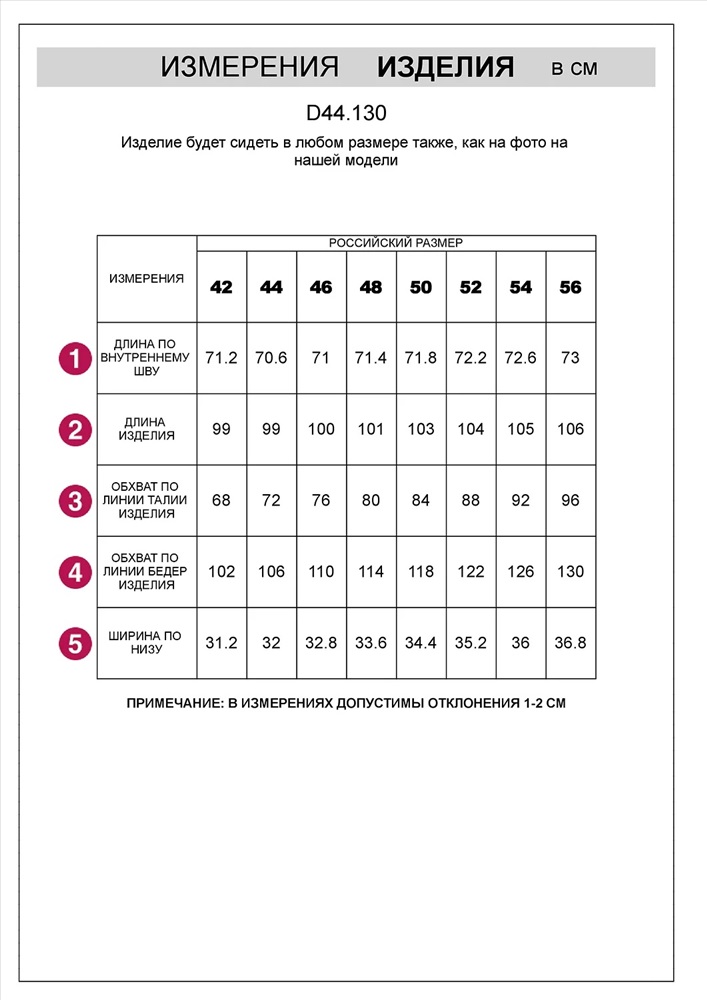 Производитель: VILATTE; Артикул поставщика: D44.130; Состав: 95%Хлопок 5%ПУ; Год: 2025; Российский размер: 44; Рост: 170; Обхват груди: 88; Обхват бедер: 96