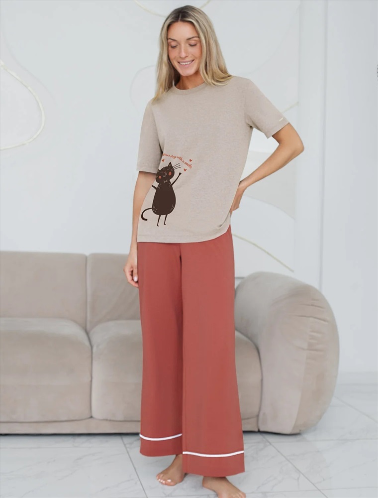 Контрастный кант по низу добавляет стильный акцент и возможность сочетать с белыми футболками нашего бренда. Эти брючки идеально подойдут тем, кто ищет стильное решение с учетом комфорта и удобства, в них вы будете женственны и утонченны даже в домашней обстановке.