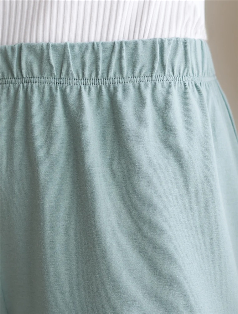 Укороченные брюки светло-оливкого цвета из мягкого эластичного хлопка подарят вам комфорт в любое время дня. Прямой крой обеспечивает свободу движений и удобство при носке. Материал приятен на ощупь, хорошо пропускает воздух и позволяет коже дышать, делая эти брюки идеальным выбором для повседневной носки.
