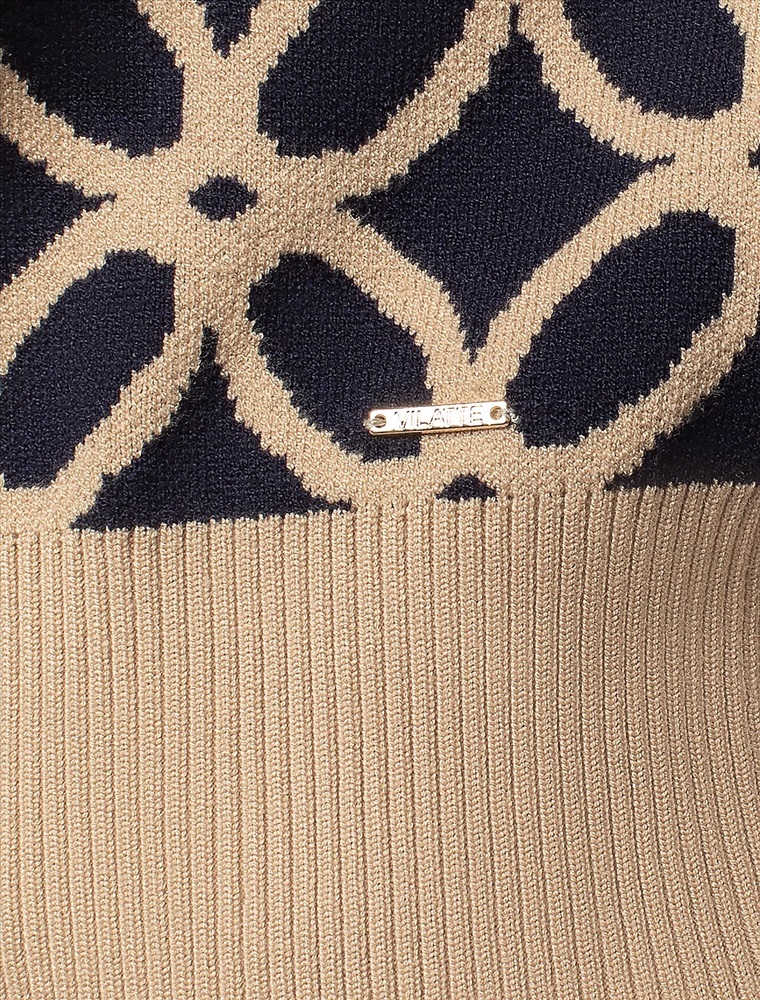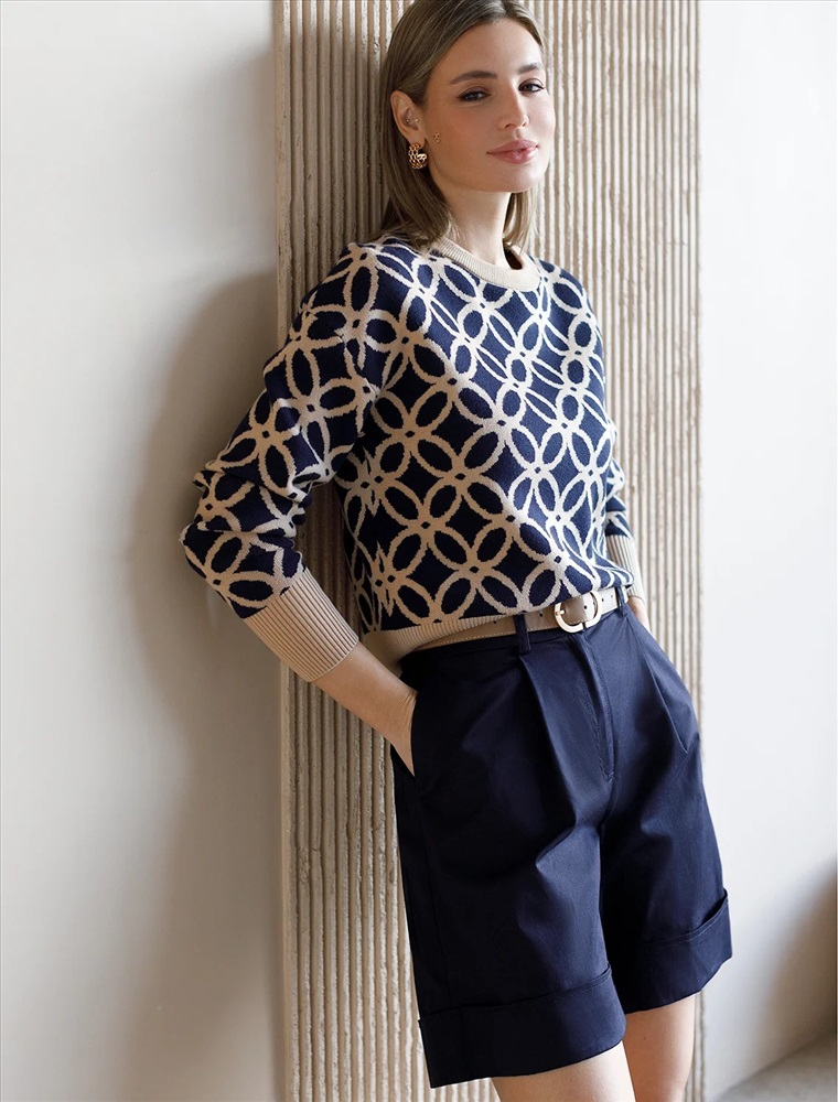 Джемпер жаккардовой вязки выполнен из мягкой пряжи на основе вискозы с добавлением кашемира. Очень приятная на ощупь пряжа дарит абсолютный комфорт, сохраняя оптимальную температуру не перегревая. Совет стилиста: модель с круглым вырезом и спущенной линией плеч гармонично дополнит повседневные образы с джинсами или брюками, при этом будет также выигрышно сочетаться с юбкой в заправку.