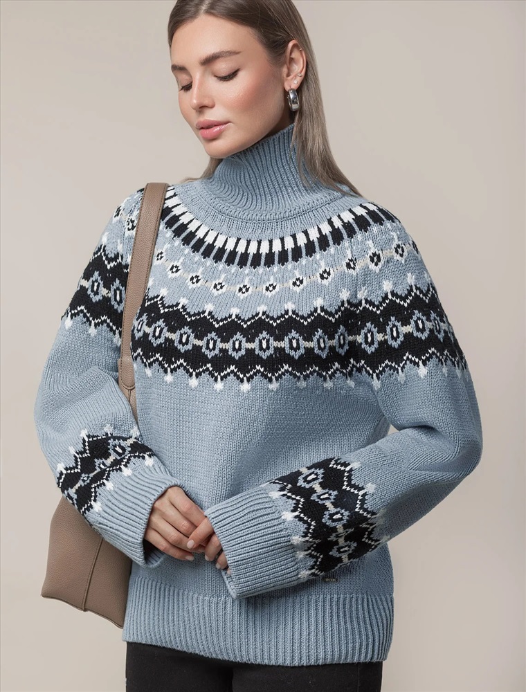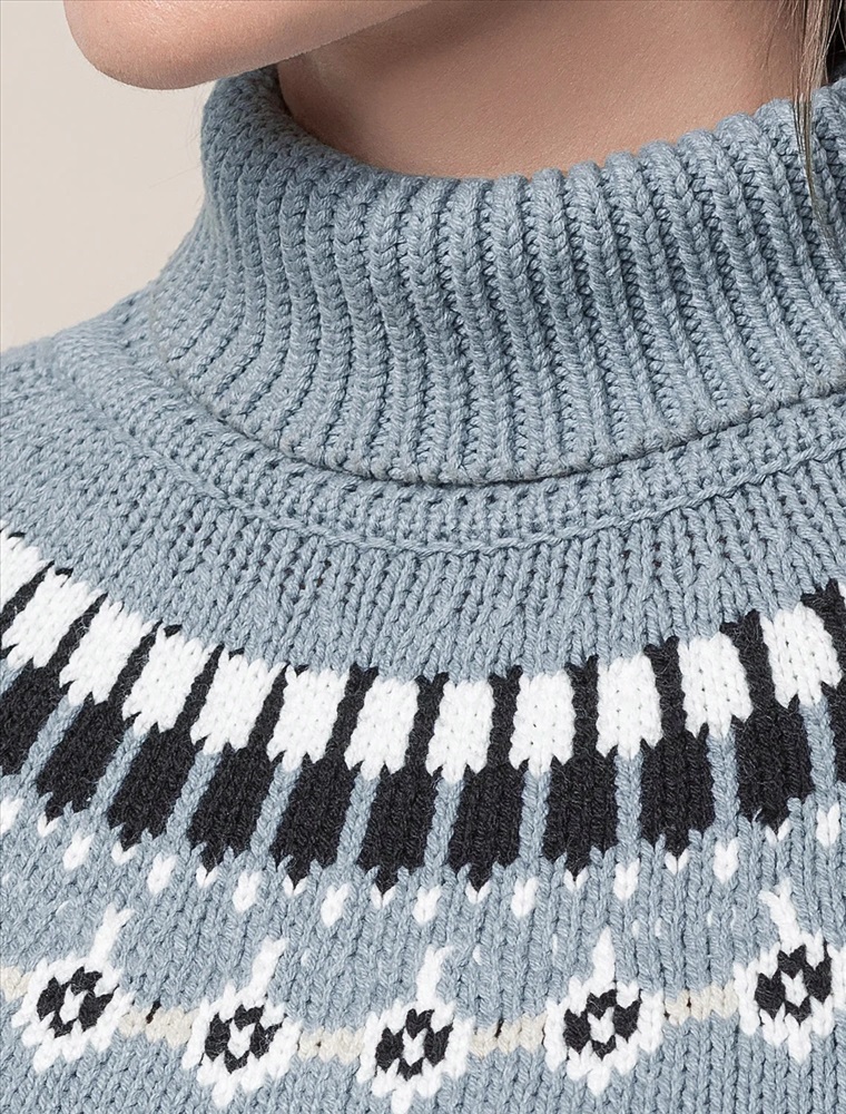 Джемпер фактурной вязки выполнен из хлопковой пряжи с добавлением акрила. Уютная модель в скандинавском стиле внесет эстетику зимнего загородного отдыха в любой гардероб. Мягкая пряжа очень приятная к телу хорошо поддерживает тепло при этом не перегревая. Отлично держит форму даже после множества стирок. Свободный силуэт позволяет носить под низ футболки, лонгсливы и топы. Изделие дополнено металлическим логотипом бренда.