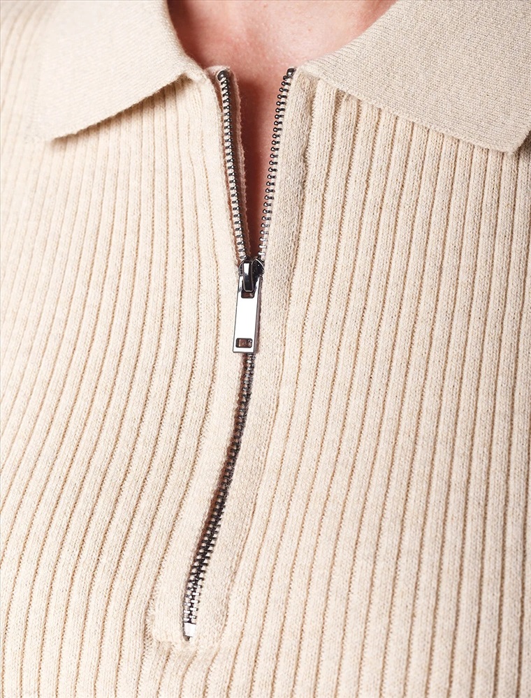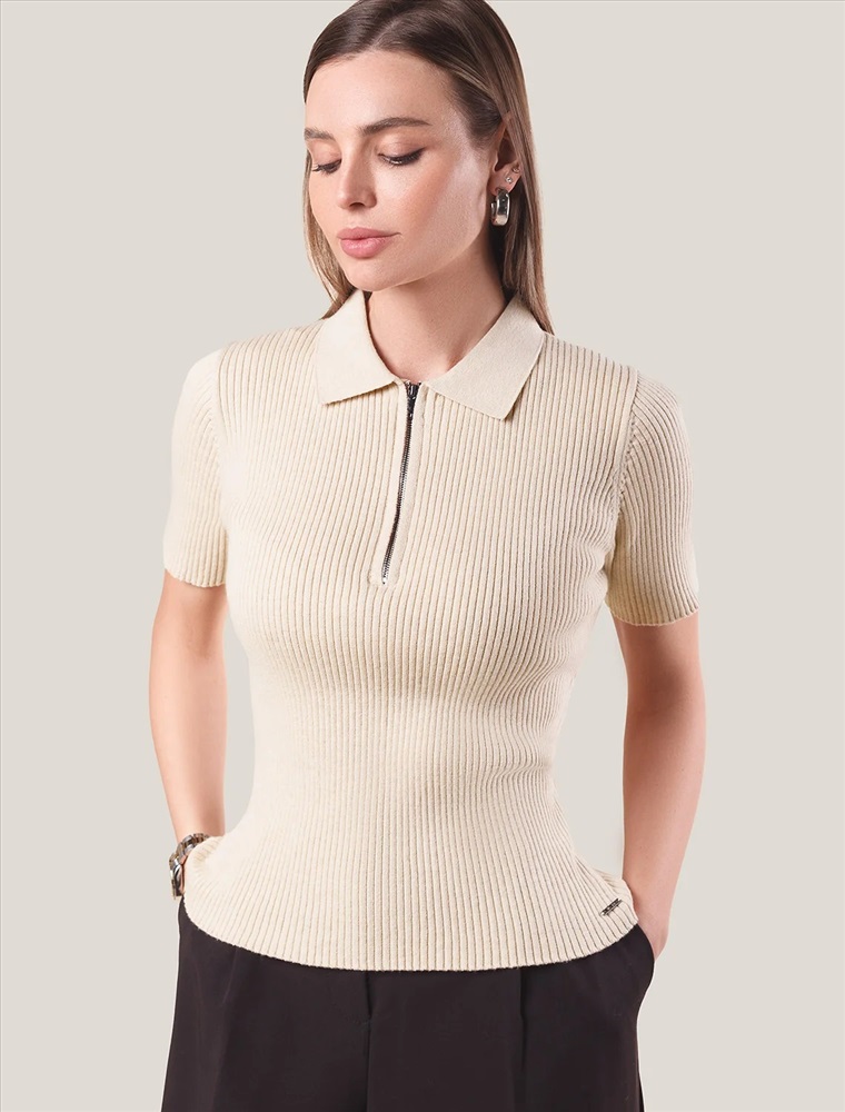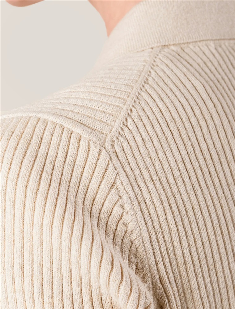 Джемпер-поло тонкой вязки выполнен из хлопка с добавлением кашемира. Модель с воротом как у поло дополнена застежкой на молнию и металлическим логотипом бренда. Мягкая и очень приятная пряжа в рубчик совершенно не колется, сохраняет тепло при этом не перегревая, гарантируя безупречный комфорт.