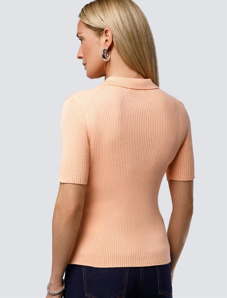 Джемпер-поло тонкой вязки выполнен из хлопка с добавлением кашемира. Модель с воротом как у поло дополнена застежкой на молнию и металлическим логотипом бренда. Мягкая и очень приятная пряжа в рубчик совершенно не колется, сохраняет тепло при этом не перегревая, гарантируя безупречный комфорт.