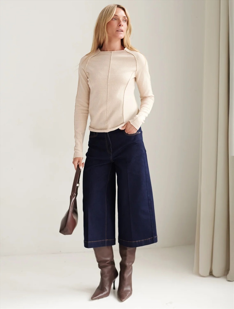 Джемпер тонкой вязки выполнен из мягкой хлопковой пряжи. Модель с декоративными швами идеально сидит по фигуре подчеркиваяч изгибы тела. Подходит для любой фигуры и впишется в любой гардероб. Изделие дополнено металлическим логотипом бренда.