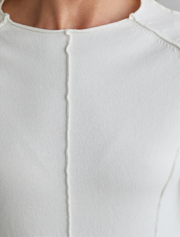 Джемпер тонкой вязки выполнен из мягкой хлопковой пряжи. Модель с декоративными швами идеально сидит по фигуре подчеркиваяч изгибы тела. Подходит для любой фигуры и впишется в любой гардероб. Изделие дополнено металлическим логотипом бренда.