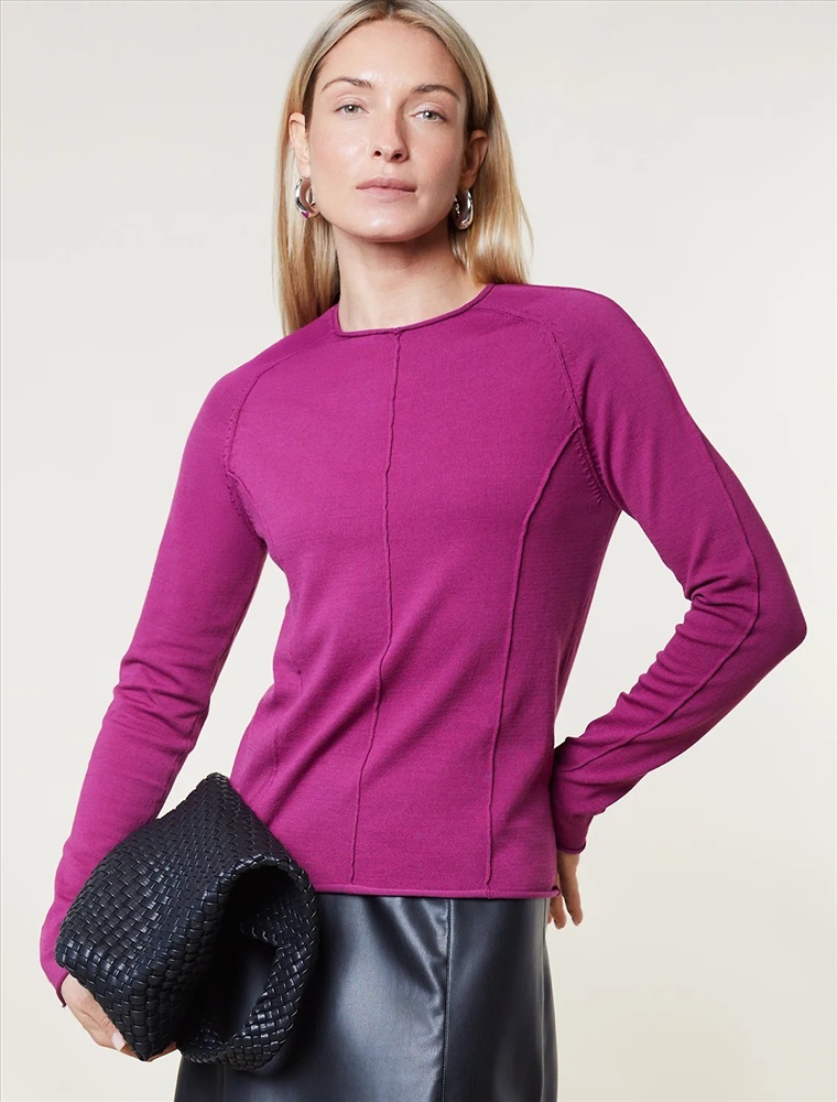 Джемпер тонкой вязки выполнен из мягкой хлопковой пряжи. Модель с декоративными швами идеально сидит по фигуре подчеркиваяч изгибы тела. Подходит для любой фигуры и впишется в любой гардероб. Изделие дополнено металлическим логотипом бренда.