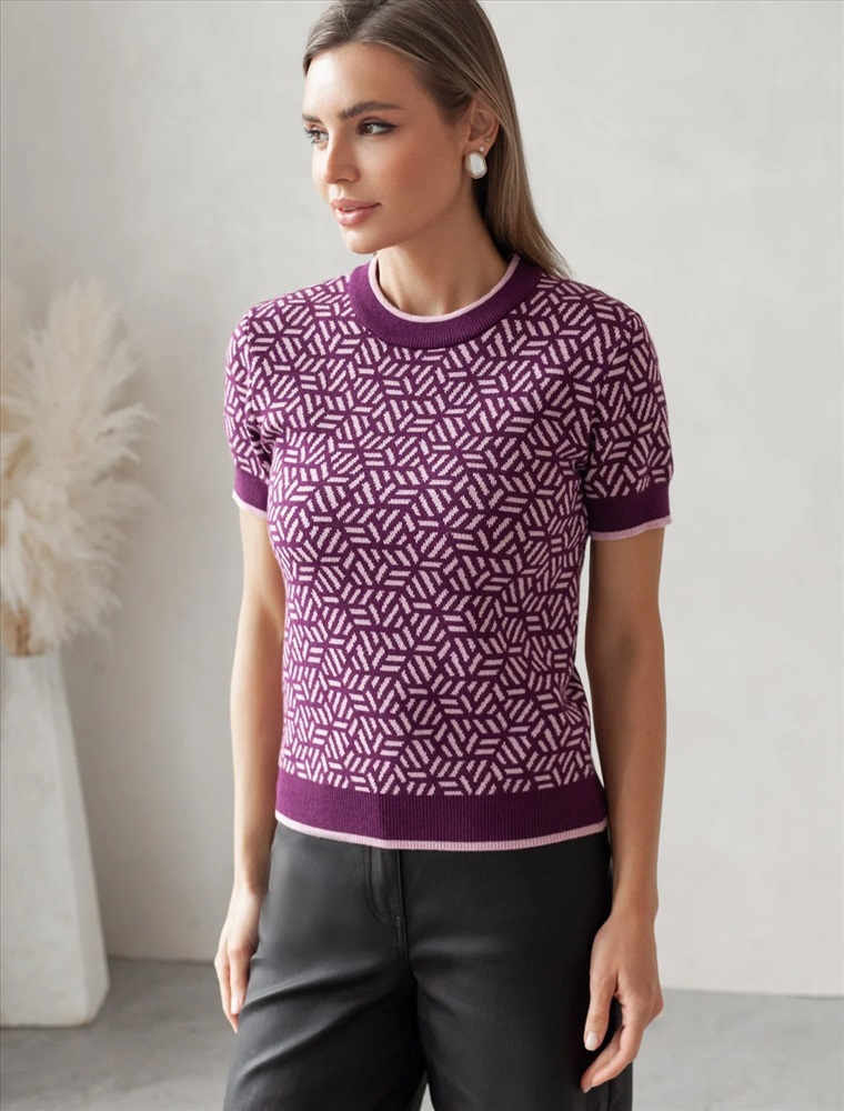 Джемпер жаккардовой вязки выполнено из нежной пряжи на основе вискозы с добавлением кашемира. Лаконичная модель с круглым воротом. Сочетается в комплекте total-look с жакетом D31.150 Изделие приятно ощущается на теле и поддерживает комфортный микроклимат.