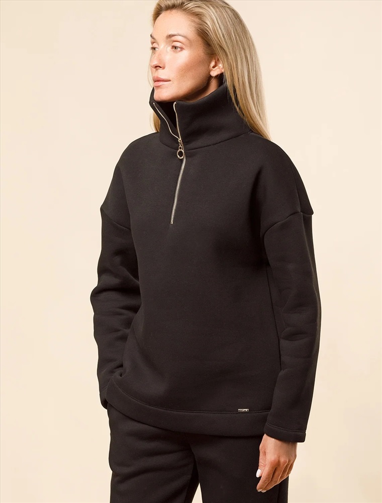 Джемпер с воротом стойкой на молнии выполнен из премиального футера трехнитки с теплым начесом. Модель дополнена золотистой фурнитурой, что поддерживает актуальный стиль спорт-шик. Свободный крой подходит для любой фигуры. Ранней осенью или поздней весной можно носить в качестве верхней одежды. Сочетается в костюме с брюками D44.133.