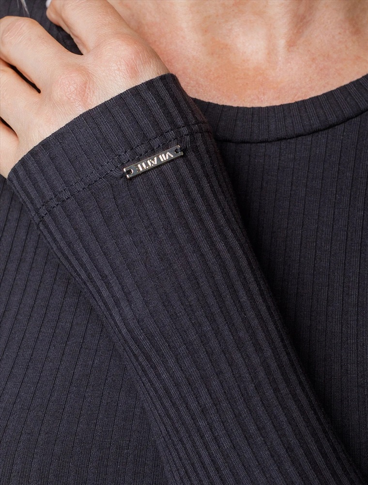 Джемпер с круглым вырезом выполнен из фактурного трикотажа в широкий рубчик. Модель идеально сидит по фигуре не сковывая движения. Хлопковый трикотаж поддерживает оптимальную температуру тела, поэтому в изделии будет комфортно в течении всего дня. Наличие эластана в составе гарантирует формоустойчивости. Базовая модель впишется в любой гардероб.