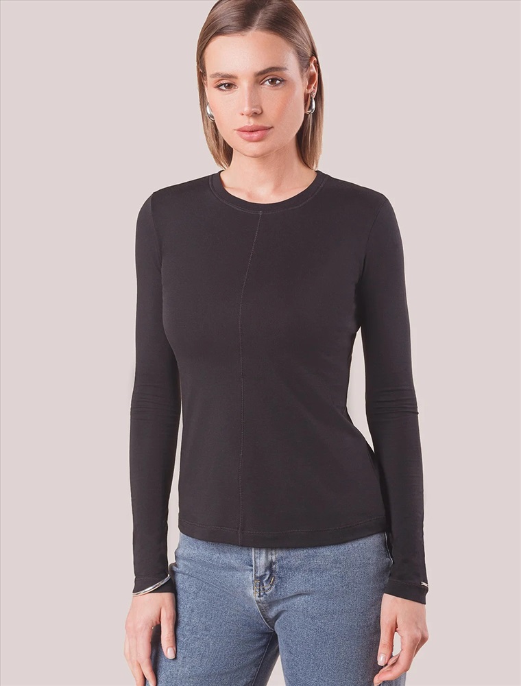 Производитель: VILATTE; Российский размер: 42; Обхват груди: 84; Обхват бедер: 92; Артикул поставщика: D49.116; Состав: 92%Хлопок 8%ПУ; Год: 2025; Рост: 170 Лонгслив выполнен из премиального хлопка с эластаном. Модель прилегающего силуэта идеально сидит по фигуре. Хорошо подойдет первым слоем в многослойные образы. Фишкой изделия служат декоративные швы и фирменный металлический логотип бренда на рукаве.
