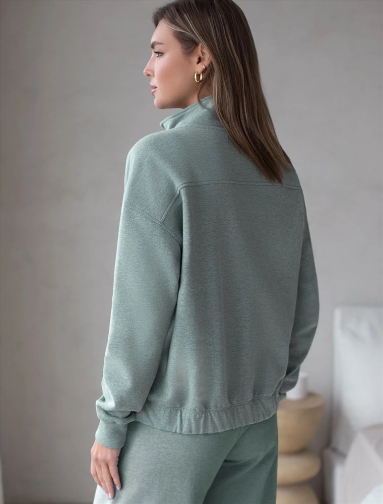Бомбер оливкового цвета с эффектом меланж среднего объема на молнии с карманами из премиального футера двухнитки — это стильный выбор для ценительниц минимализма и комфорта. Натуральный состав обеспечивает дышащий эффект, мягкость и приятные тактильные ощущения, Эластичный материал позволяет свободно двигаться без лишнего стеснения, а также отлично сохраняет форму даже после длительного ношения. Манжеты на рукавах и резинка по низу обеспечивают надежную посадку, сохраняя тепло в прохладную погоду. Повседневный бомбер отличается аккуратным силуэтом без лишнего объема и универсальной длиной, которая идеально подходит для повседневного и спортивного образа. Прорезные карманы по бокам добавляют функциональности, сохраняя при этом стильный внешний вид. Представленная размерная линейка позволяет подобрать оптимальный вариант для любой фигуры и размера, на маленький или плюс сайз, обеспечивая свободу движений без компромиссов по стилю. Этот легкий бомбер станет отличным дополнением к базовому гардеробу, сочетая практичность с элегантностью. Вы можете составить комплект с брюками D44.157 и свитшотом D49.139.