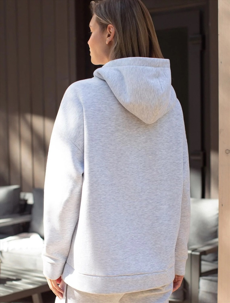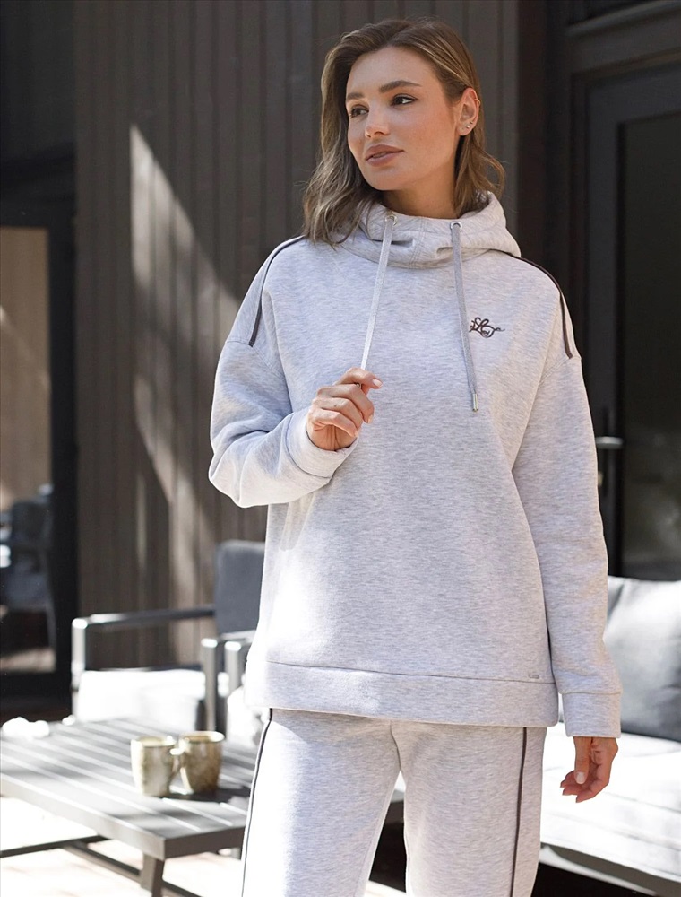 Уютное худи серого цвета с эффектом меланж с цельнокроенным капюшоном и спущенной линией плеча создано для комфорта в холодную погоду. Модель выполнена из премиального футера трехнитки с мягким начесом, что обеспечивает дополнительное тепло и приятные ощущения при носке. Глубокий капюшон дополнен шнуром для регулировки объема, что обеспечивает отличную защиту от ветра и холода, а серебристая фурнитура добавляет стильный акцент к современному худи. Элементы дизайна — минималистичная вышивка с логотипом бренда и тонкие онтрастные лампасы — делают худи более выразительным без перегруженности деталями, сохраняя эстетичность и современный вид. Эластичные манжеты на рукавах обеспечивают дополнительную защиту от продувания, способствуя сохранению тепла внутри. Натуральный хлопок гарантирует дышащий эффект, позволяя сохранять оптимальный микроклимат тела даже при длительном ношении. Благодаря эластану в составе повседневное худи подходит для активного отдыха, вы будете чувствовать себя свободно в любой ситуации. Пред