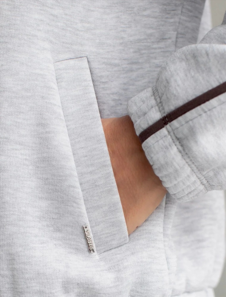 Уютный бомбер со спущенной линией плеча создан для комфорта в холодную погоду. Модель выполнена из премиального футера трехнитки с мягким начесом, что обеспечивает дополнительное тепло и приятные ощущения при носке. Элементы дизайна — минималистичная вышивка с логотипом бренда и тонкие онтрастные лампасы — делают бомбер более выразительным без перегруженности деталями, сохраняя эстетичность и современный вид. Эластичные манжеты на рукавах обеспечивают дополнительную защиту от продувания, способствуя сохранению тепла внутри. Натуральный хлопок гарантирует дышащий эффект, позволяя сохранять оптимальный микроклимат тела даже при длительном ношении. Благодаря эластану в составе повседневный бомбер подходит для активного отдыха, вы будете чувствовать себя свободно в любой ситуации. Сочетается в костюме с брюками D44.159