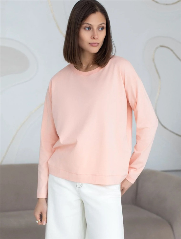 Свободный лонгслив пудрового цвета с длинным рукавом выполнен из премиального хлопка с добавлением эластана, что обеспечивает комфорт и приятные тактильные ощущения. Однотонная расцветка и круглый ворот создают стильный и универсальный образ, который подойдет для повседневного использования. Спущенная линия плеча придает лонгу современный и расслабленный силуэт. Такой лонгслив идеально подходит для весеннего и летнего сезона благодаря легкой и дышащей ткани. Большие размеры позволяют выбрать оптимальный вариант на любую фигуру, обеспечивая свободу движений и удобство на каждый день. Этот комфортный лонгслив станет отличной базой в гардеробе, сочетаясь с различными стилями одежды и создавая простой, но эффектный образ.