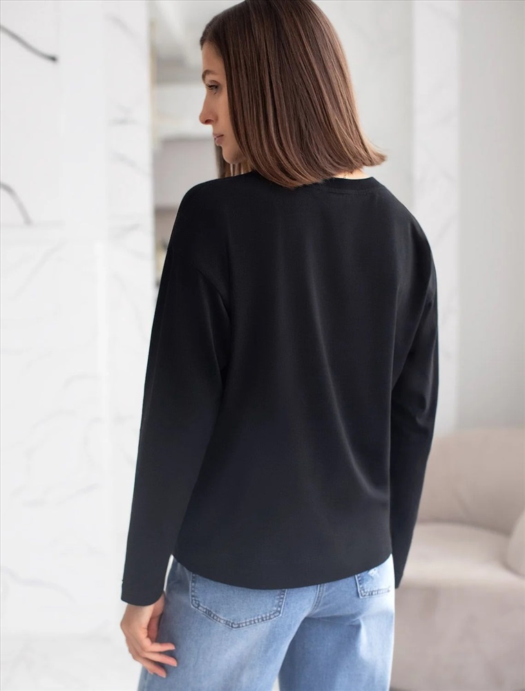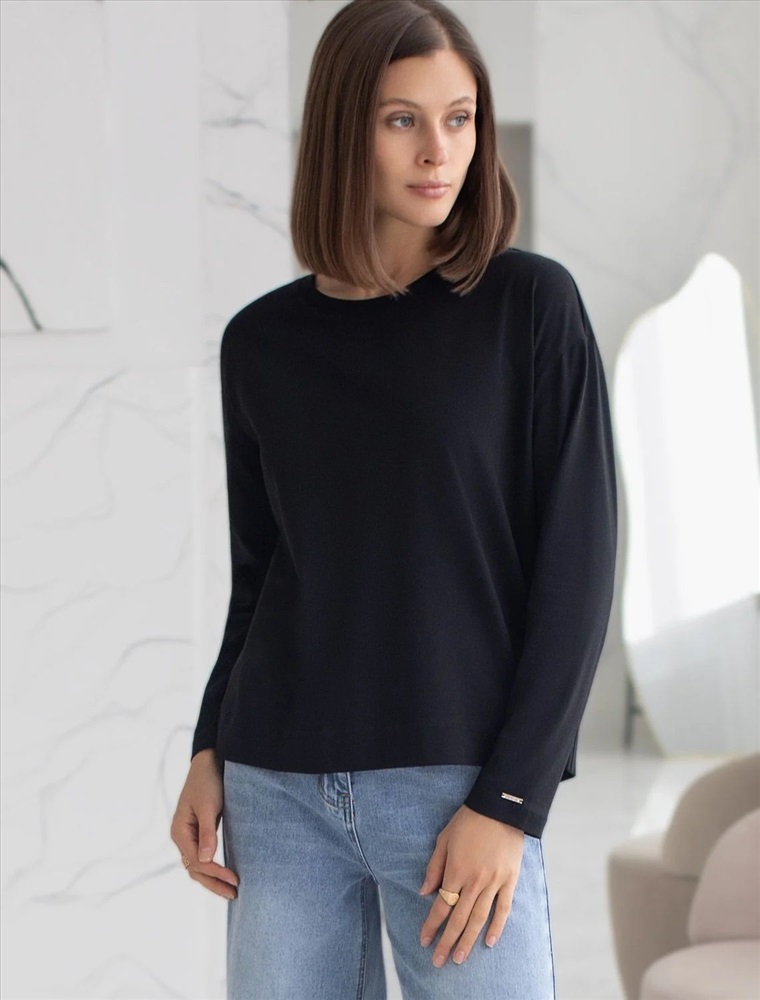 Свободный лонгслив черного цвета с длинным рукавом выполнен из премиального хлопка с добавлением эластана, что обеспечивает комфорт и приятные тактильные ощущения. Однотонная расцветка и круглый ворот создают стильный и универсальный образ, который подойдет для повседневного использования. Спущенная линия плеча придает лонгу современный и расслабленный силуэт. Такой лонгслив идеально подходит для весеннего и летнего сезона благодаря легкой и дышащей ткани. Большие размеры позволяют выбрать оптимальный вариант на любую фигуру, обеспечивая свободу движений и удобство на каждый день. Этот комфортный лонгслив станет отличной базой в гардеробе, сочетаясь с различными стилями одежды и создавая простой, но эффектный образ.