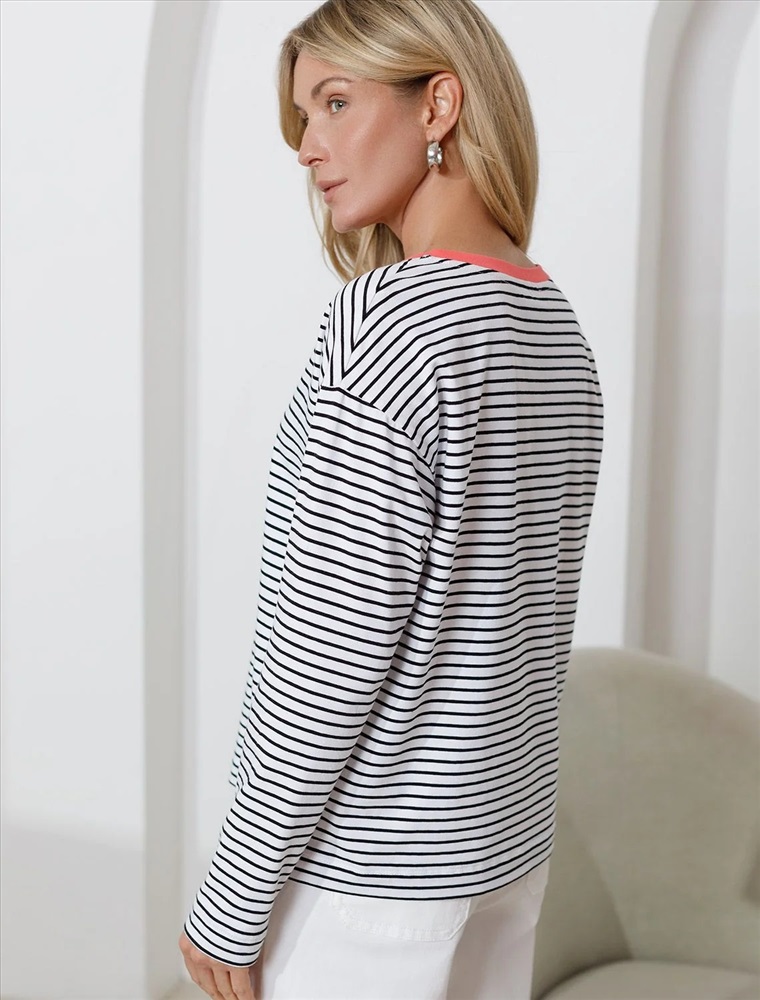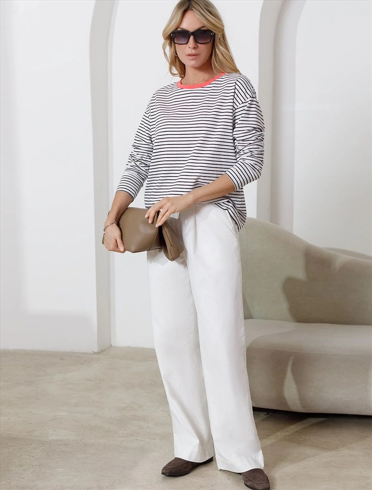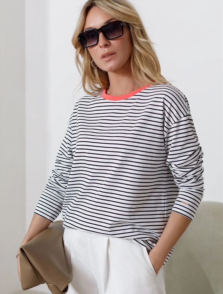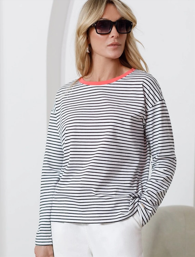Свободный лонгслив тонкую черно-белую полоску с длинным рукавом выполнен из премиального хлопка с добавлением эластана, плотностью 170 Г/м2, что обеспечивает комфорт и приятные тактильные ощущения. Принт полоска - придает изделию легкую текстурность и стильный вид, а круглый ворот создает универсальный образ, который подойдет для повседневного использования. Такой лонгслив идеально подходит для весеннего и летнего сезона благодаря легкой и дышащей ткани. Представленная широкая размерная линейка позволяет выбрать оптимальный вариант на любую фигуру, в том числе на плюс-сайз, обеспечивая свободу движений и удобство на каждый день. Этот комфортный лонгслив станет отличной базой в гардеробе, сочетаясь с различными стилями одежды и создавая простой, но эффектный образ.