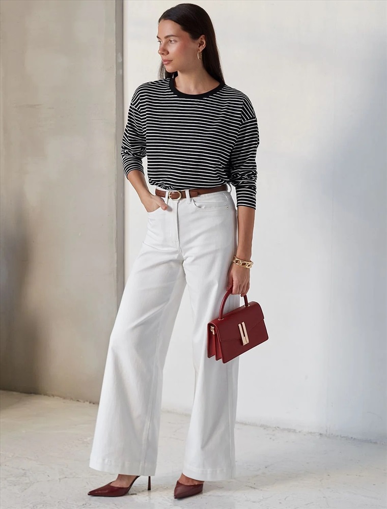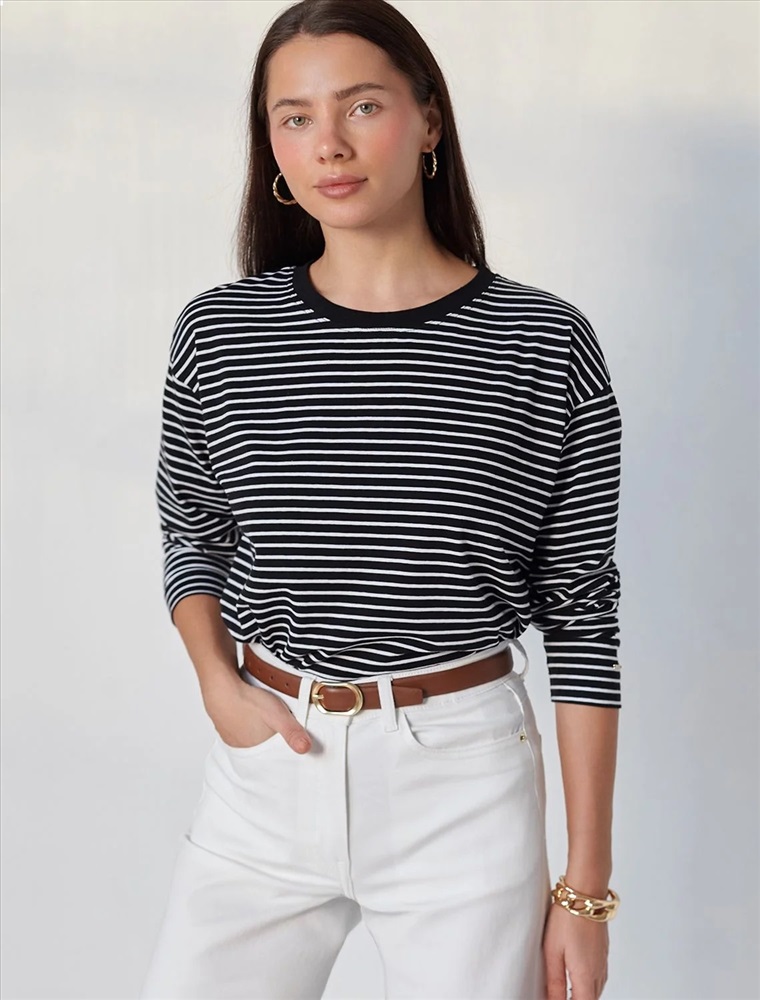 Свободный лонгслив в черно-белую полоску с длинным рукавом выполнен из премиального хлопка с добавлением эластана, плотностью 170 Г/м2, что обеспечивает комфорт и приятные тактильные ощущения. Принт полоска - придает изделию легкую текстурность и стильный вид, а круглый ворот создает универсальный образ, который подойдет для повседневного использования. Такой лонгслив идеально подходит для весеннего и летнего сезона благодаря легкой и дышащей ткани. Представленная широкая размерная линейка позволяет выбрать оптимальный вариант на любую фигуру, в том числе на плюс-сайз, обеспечивая свободу движений и удобство на каждый день. Этот комфортный лонгслив станет отличной базой в гардеробе, сочетаясь с различными стилями одежды и создавая простой, но эффектный образ.