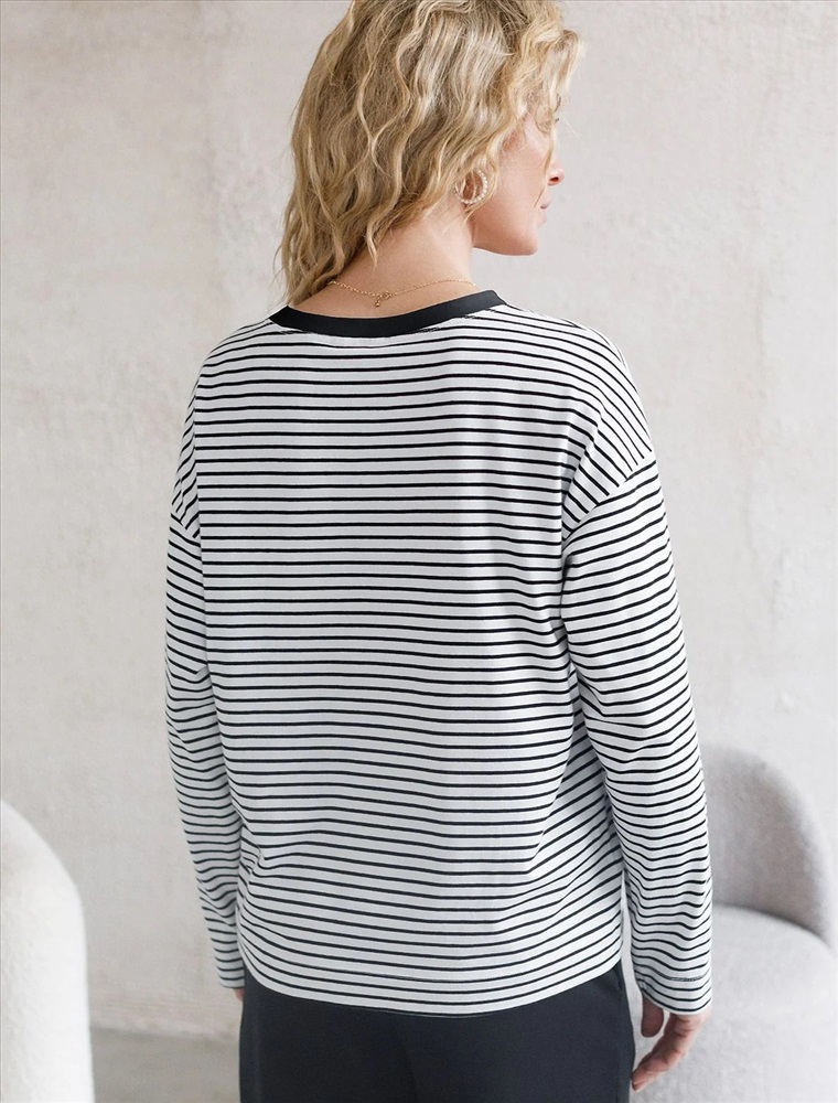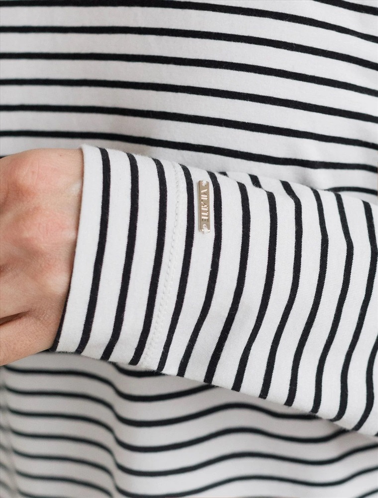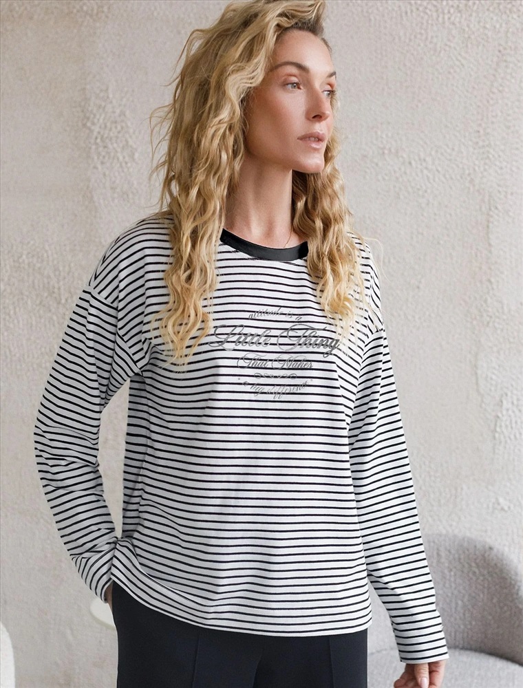 Свободный лонгслив белого цвета в черную полоску с длинным рукавом выполнен из премиального хлопка с добавлением эластана, плотностью 170 Г/м2, что обеспечивает комфорт и приятные тактильные ощущения. Полоска - придает изделию легкую текстурность, принт в виде надписи, который нанесен красками с устойчивым покрытием, добавляет стиля и индивидуальности. Перевод надписи: It is a litlle thing called attitude that makes a big difference - Это такая мелочь, как отношение, которое имеет большое значение. Круглый ворот создает универсальный образ, который подойдет для повседневного использования. Такой лонгслив идеально подходит для весеннего и летнего сезона благодаря легкой и дышащей ткани. Представленная широкая размерная линейка позволяет выбрать оптимальный вариант на любую фигуру, в том числе на плюс-сайз, обеспечивая свободу движений и удобство на каждый день. Этот комфортный лонгслив станет отличной базой в гардеробе, сочетаясь с различными стилями одежды и создавая простой, но эффектный образ.