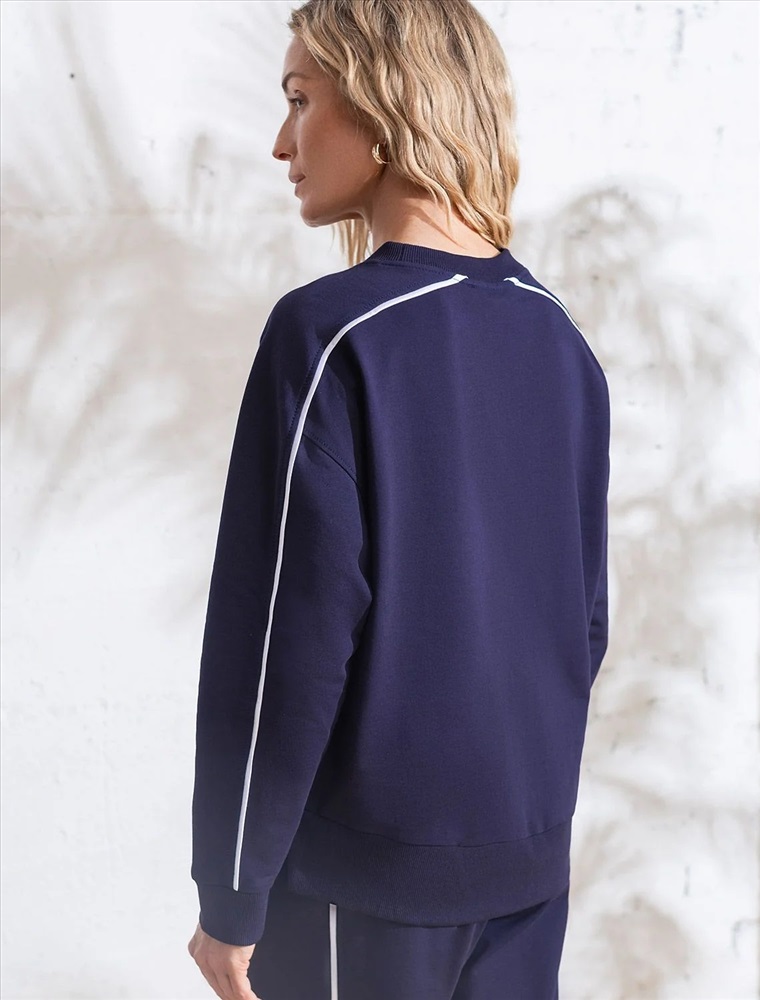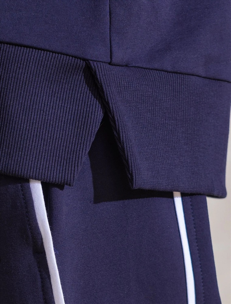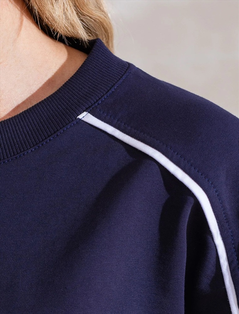 Стильный свитшот темно-синего цвета из премиального футера двухнитки с эластаном сочетает в себе комфорт и оригинальность. Джемпер выполнен из натурального хлопка, который обеспечивает мягкость и дышащие свойства ткани. Нежный материал дарит ощущение уюта в любое время года, а премиальное качество изготовления гарантирует долговечность и сохранение формы после множества стирок. Особенность изделия — спущенная линия плеча и аккуратные разрезы, которые добавляют современный акцент и делают образ более выразительным. Лампасы на рукавах добавляют наряду динамики и выделяют этот свитшот на фоне классических решений. Принт в виде надписи придает индивидуальность, позволяя выделиться без лишней вычурности. Перевод надписи: Vintage collection Cotton club Inspired by 1978 - Винтажная коллекция Cotton Club, вдохновленная 1978 годом. Дополнен металлическим логотипом бренда. Представлена широкая размерная линейка, включая маленькие и большие размеры, что позволяет подобрать идеальный вариант для разной фигуры и роста. Этот уютный свитшот отлично подходит для повседневной носки благодаря своей комфортной посадке и мягкой текстуре. Он станет универсальным элементом гардероба, легко сочетающимся с различными стилями одежды. Свободный джемпер из футера станет отличным выбором для активного отдыха, обеспечивая стильный внешний вид и удобство в прохладное время года.