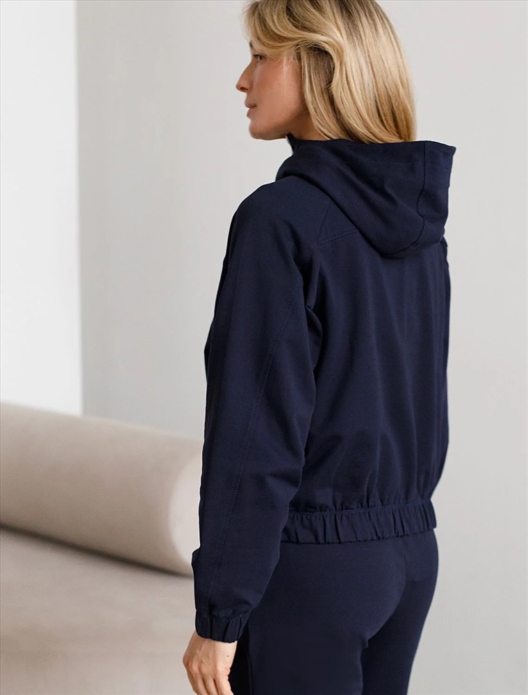 Худи темно-синего цвета на молнии выполнено из премиального футера двухнитки плотностью 240 Г/м2. Натуральный состав обеспечивает хорошую воздухопроницаемость, мягкость и приятные тактильные ощущения, Эластичный материал зип-худи позволяет свободно двигаться без лишнего стеснения, а также отлично сохраняет форму даже после длительного ношения. Манжеты на рукавах и резинка по низу обеспечивают надежную посадку, сохраняя тепло в прохладную погоду. Зипка на молнии отличается универсальной длиной, которая идеально подходит для повседневного и спортивного образа. Капюшон добавляет уюта, а прорезные карманы по бокам добавляют функциональности, сохраняя при этом стильный внешний вид. На груди расположена аккуратная нашивка в виде логотипа бренда. Представленная размерная линейка позволяет подобрать оптимальный вариант для любой фигуры и размера, на маленький или плюс сайз, обеспечивая идеальную посадку без компромиссов по стилю. Эта толстовка из футера станет отличным дополнением к базовому гардеробу, сочетая практичность с элегантностью.