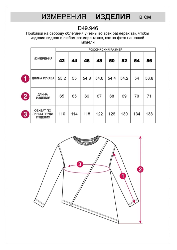 Ассиметричный джемпер выполнен из премиального футера двухнитки. Спущенная линия плеча поддерживает расслабленный образ, который особенно хорошо будет сочетаться в костюме с брюками D44.122, D44.123 и D44.128. Наличие эластана в составе изделия гарантирует идеальную посадку и комфорт.