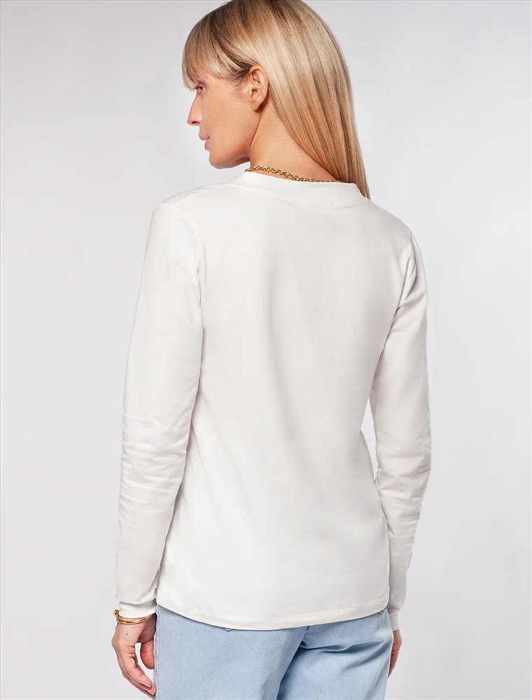 Белый джемпер с длинными рукавами и V-образным вырезом сшит из премиального хлопка. Однотонная хлопковая модель хорошо поддерживает комфортный для тела микроклимат. Благодаря вплетению эластановых волокон вещь хорошо сохраняет форму.