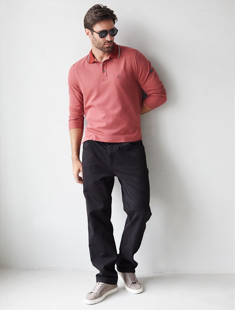 Поло хорошо садится по фигуре благодаря добавлению эластичных волокон — такой вариант подходит для мужчин любого роста и размеров, не стесняет движений и создает ощущение свободы и легкости. Повседневный лонгслив дополнен ненавязчивой вышивкой на груди в виде логотипа бренда в тон