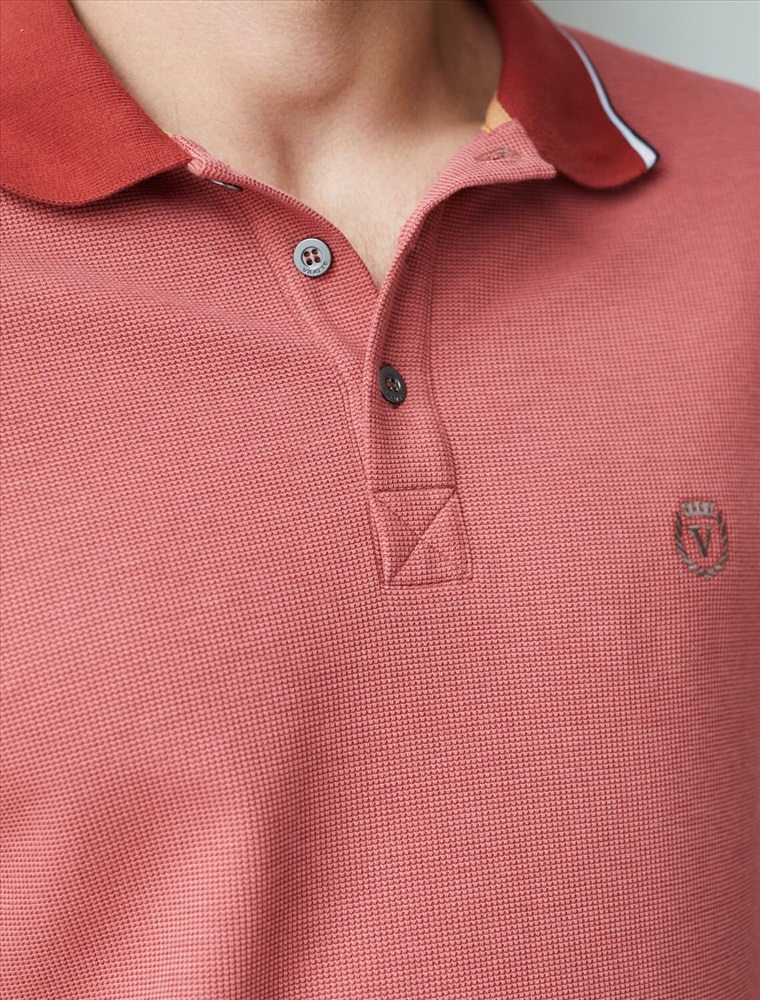 Стильный лонгслив кирпичного цвета с плетеным воротником поло с застежкой на пуговицы выполнен из премиального хлопка в сочетании с эластаном .Невероятно мягкая ткань из натуральных волокон - она едва ощутима на коже и словно обнимает тело. Материал при касании кажется бархатистым, при движении он словно повторяет все мельчайшие линии фигуры. По свойствам материал сочетает в себе практичность и нежность: отлично провускает воздух, сохраняя ощущение свежести в течение всего дня, при этом созраняет тепло в прохладную погоду.Идеально подходит для чувствительной кожи, не вызывает раздражения и дискомфорта. Удобный отложной воротник делает образ современным и стильным, а длинные рукава с манжетами защищают руки при ветреной погоде.