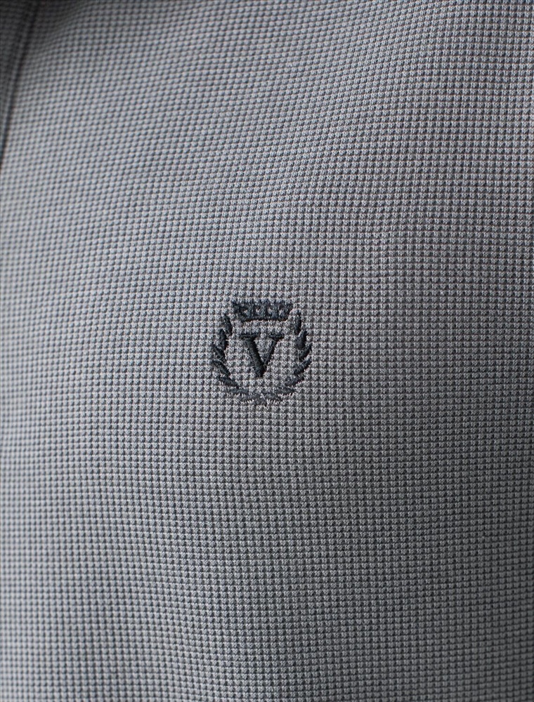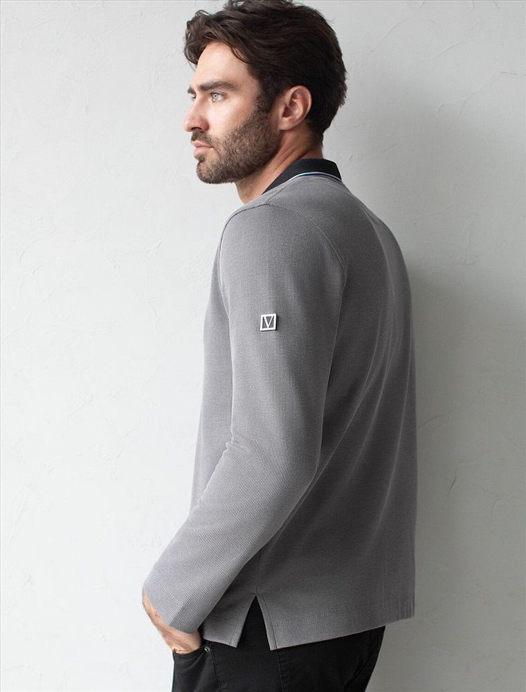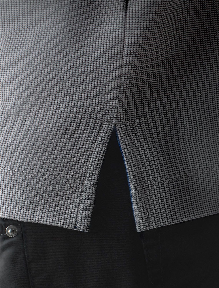 Стильный лонгслив темно-серого цвета с плетеным воротником поло с застежкой на пуговицы выполнен из премиального хлопка в сочетании с эластаном .Невероятно мягкая ткань из натуральных волокон - она едва ощутима на коже и словно обнимает тело. Материал при касании кажется бархатистым, при движении он словно повторяет все мельчайшие линии фигуры. По свойствам материал сочетает в себе практичность и нежность: отлично провускает воздух, сохраняя ощущение свежести в течение всего дня, при этом созраняет тепло в прохладную погоду.Идеально подходит для чувствительной кожи, не вызывает раздражения и дискомфорта. Удобный отложной воротник делает образ современным и стильным, а длинные рукава с манжетами защищают руки при ветреной погоде.