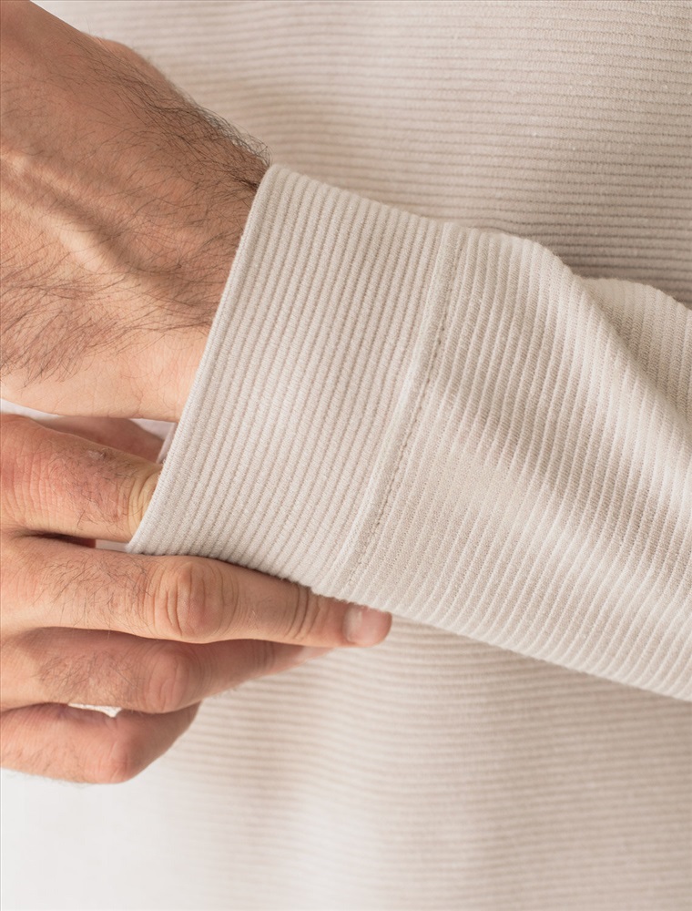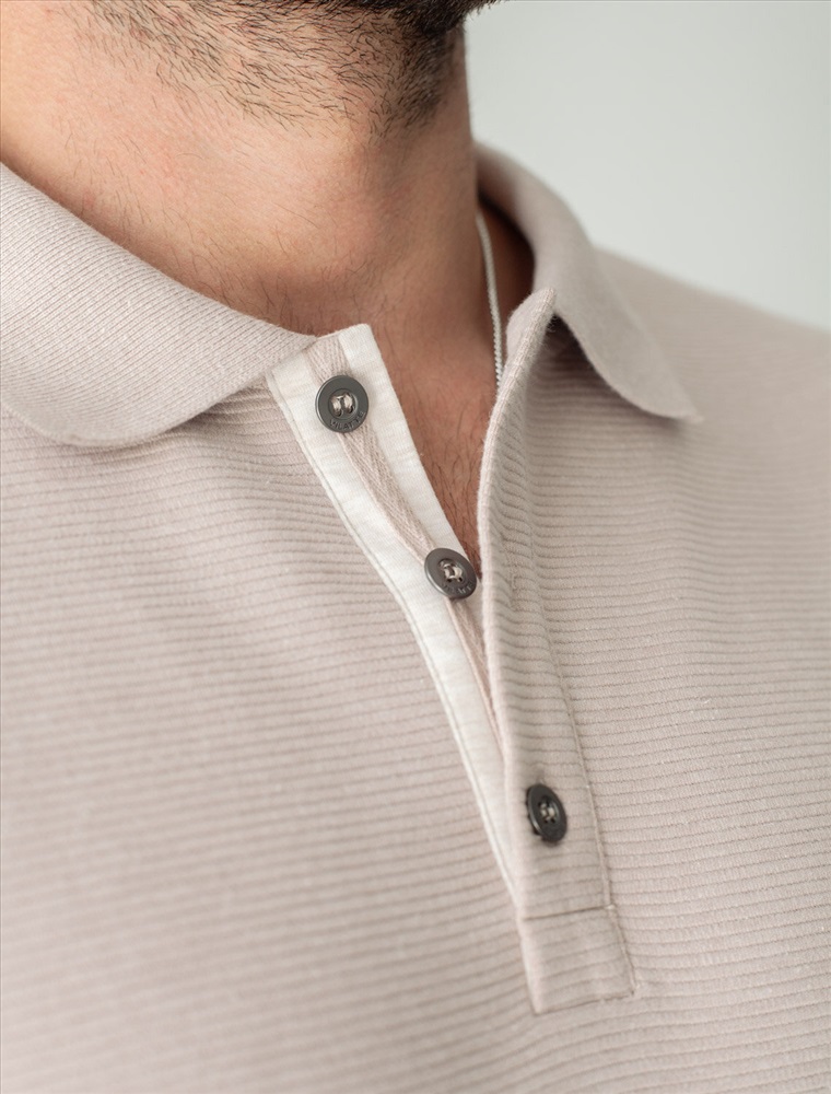 Стильный лонгслив светло-кофейного цвета с эффектом меланж с плетеным воротником поло с застежкой на металлические пуговицы выполнен из премиального хлопка в сочетании с эластаном .Невероятно мягкая ткань из натуральных волокон - она едва ощутима на коже и словно обнимает тело. Материал при касании кажется бархатистым, при движении он словно повторяет все мельчайшие линии фигуры. По свойствам материал сочетает в себе практичность и нежность: отлично провускает воздух, сохраняя ощущение свежести в течение всего дня, при этом созраняет тепло в прохладную погоду.Идеально подходит для чувствительной кожи, не вызывает раздражения и дискомфорта. Удобный отложной воротник с контрастной отделкой делает образ современным и стильным, а длинные рукава с манжетами защищают руки при ветреной погоде.