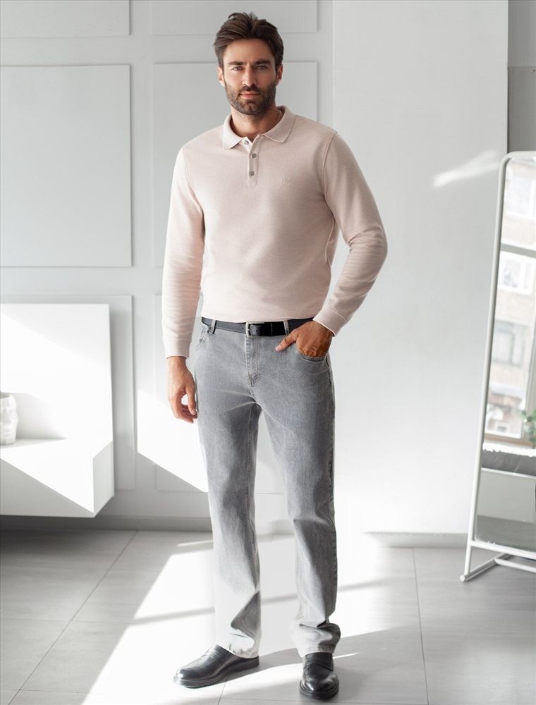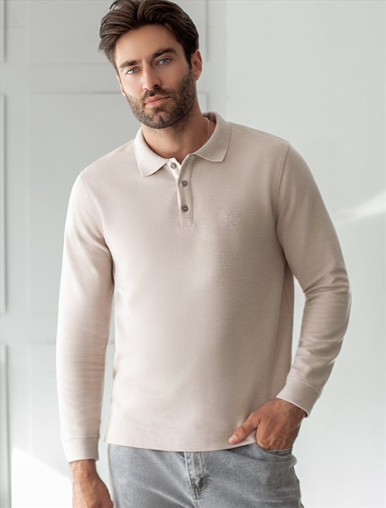Поло хорошо садится по фигуре благодаря добавлению эластичных волокон — такой вариант подходит для мужчин любого роста и размеров, не стесняет движений и создает ощущение свободы и легкости. Лонгслив с пуговицами дополнен