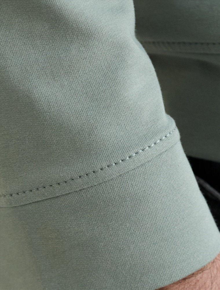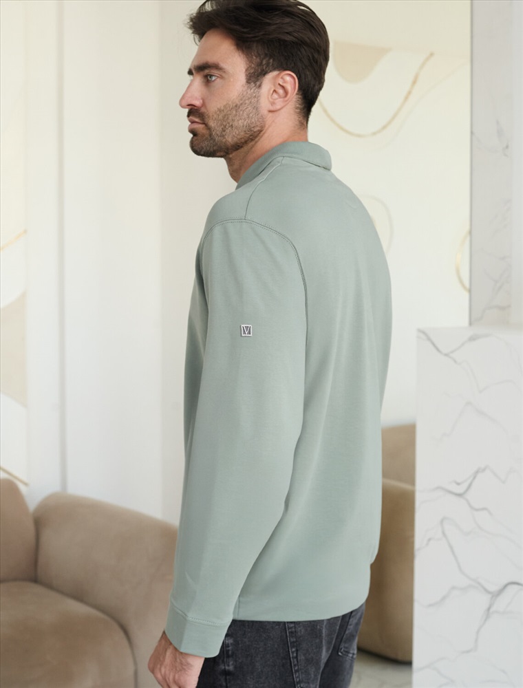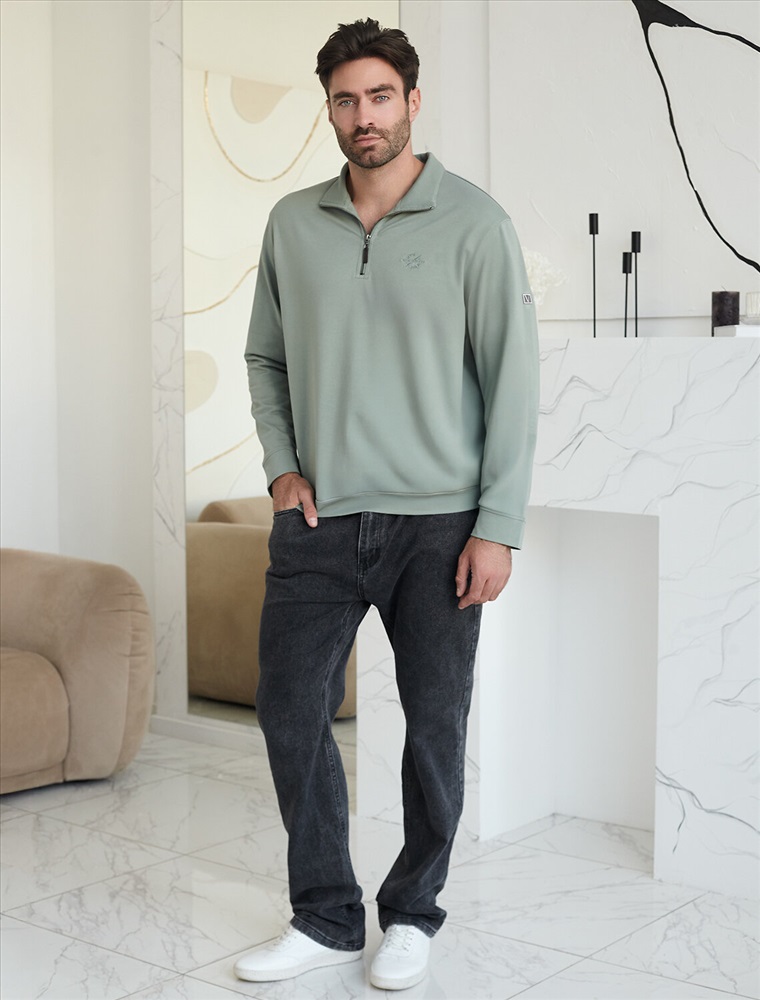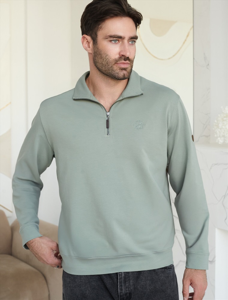 Уютный и стильный свитшот светло-оливкого цвета с воротом-стойкой на молнии - идеальный выбор для повседневного образа. Выполнен из премиального футера двухнитки с эластаном, Изнаночная сторона невероятно мягкая, что делает материал особенно приятным к телу. Благодаря эластичной структуре ткань хорошо тянется, сохраняет форму после длительной носки и обеспечивает свободу движений даже в самых активных буднях, а натуральный состав обеспечивает отличную воздухопррницаемость, позволяя коже дышать и не перегреваться.
