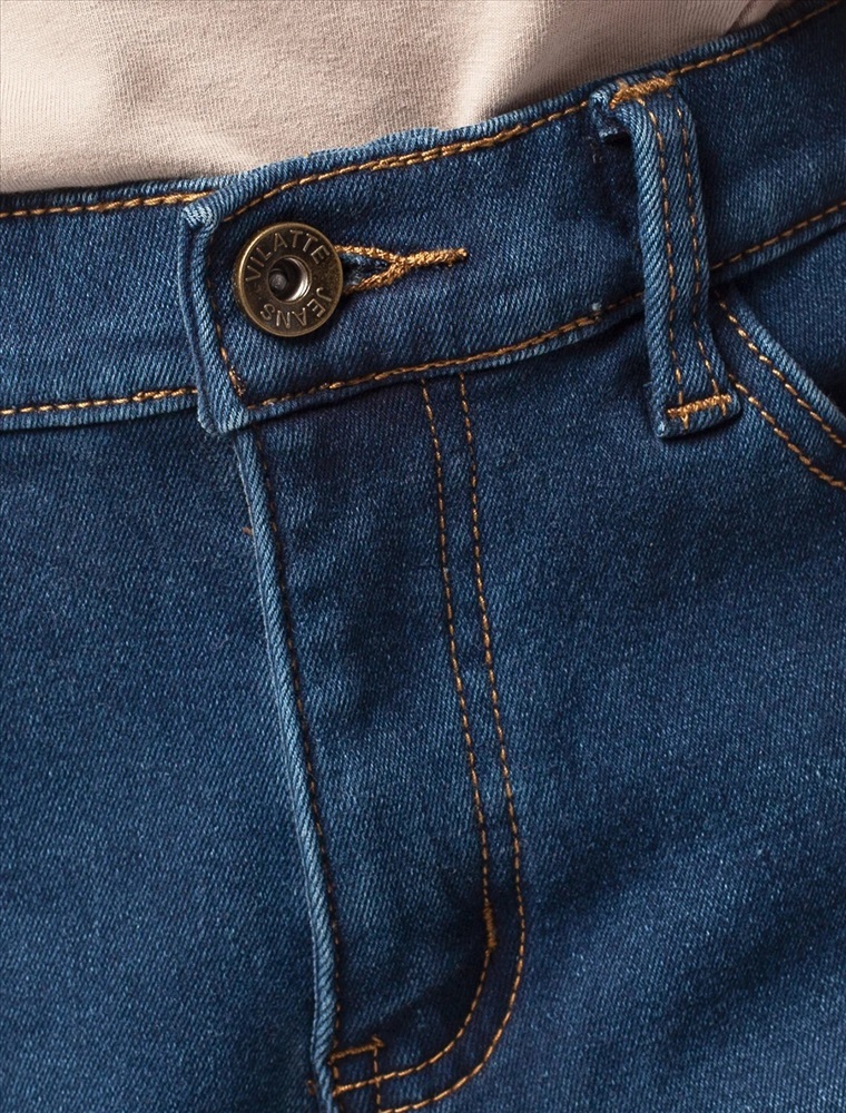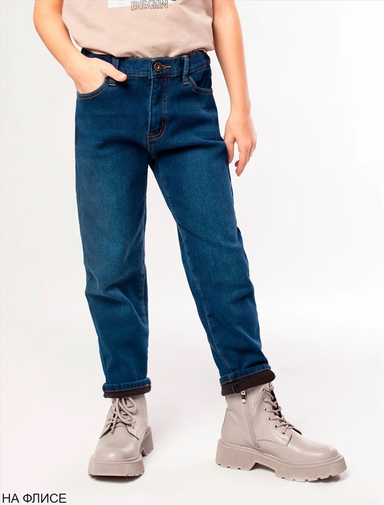 Синие джинсы выполнены из эластичного денима. Внутренняя сторона джинс из мягкого флиса, обеспечит тепло и комфорт на целый день. Есть дополнительная фиксация талии при помощи внутренней резинки. Изделие дополнено высококачественной металлической фурнитурой с логотипом бренда.
