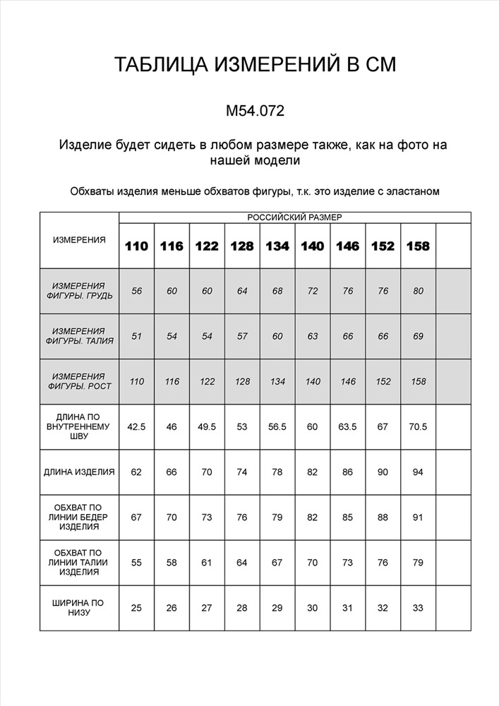 Производитель: VILATTE; Российский размер: 104; Рост: 104; Обхват груди: 52; Обхват талии: 48; Артикул поставщика: M54.072; Состав: 68%Хлопок 30%Вис 2%ПУ; Год: 2025