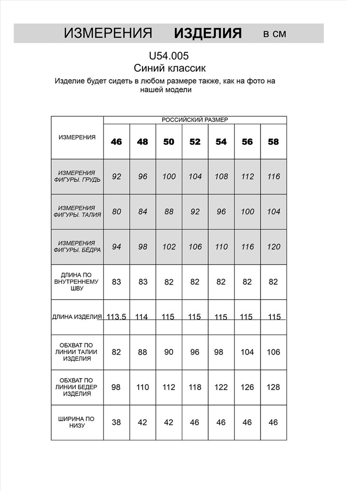 Производитель: VILATTE; Российский размер: 56; Обхват груди: 112; Обхват талии: 100; Обхват бедер: 116; Артикул поставщика: U54.005; Состав: 98%Хлопок 2%ПУ; Год: 2025; Рост: 182