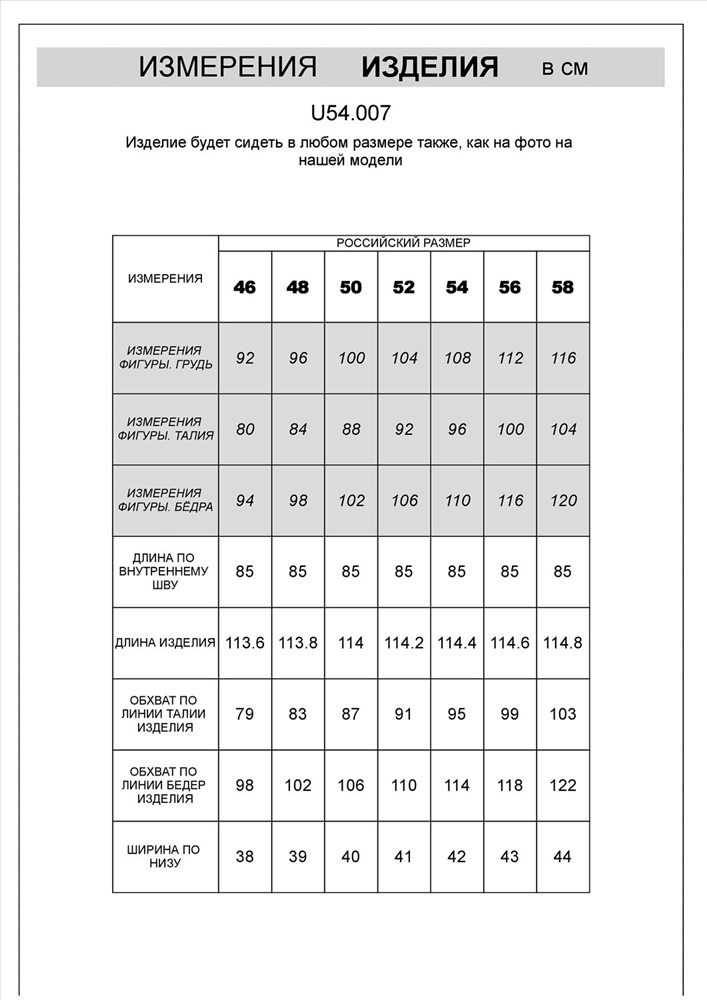 Производитель: VILATTE; Российский размер: 54; Обхват груди: 108; Обхват талии: 96; Обхват бедер: 110; Артикул поставщика: U54.007; Состав: 80%Хлопок 18%ПЭ 2%ПУ; Год: 2025; Рост: 182