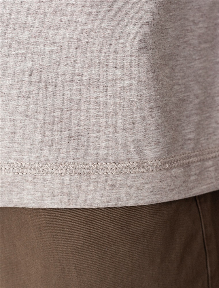 Базовая футболка светло-кофейного цвета с эффектом меланж из премиального хлопка с эластаном полуприлегающего кроя станет универсальным решением для любого случая. Прямой крой обеспечивает комфортную посадку на любую фигуру, включая большие размеры, подходит как на низкий, так и на высокий рост. Выполненная из натуральной ткани, она обладает дышащими свойствами, а за счет эластичности сохраняет форму даже после длительного ношения и многочисленных сирок.